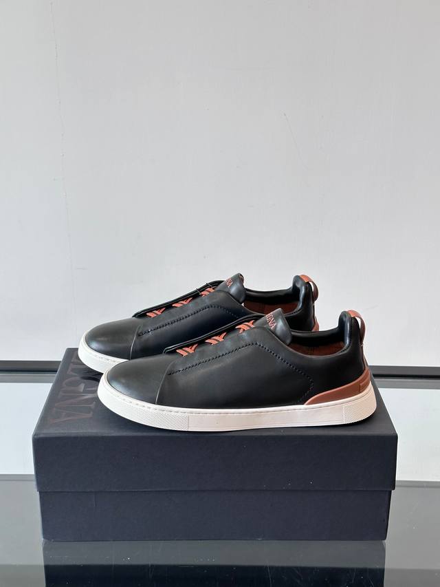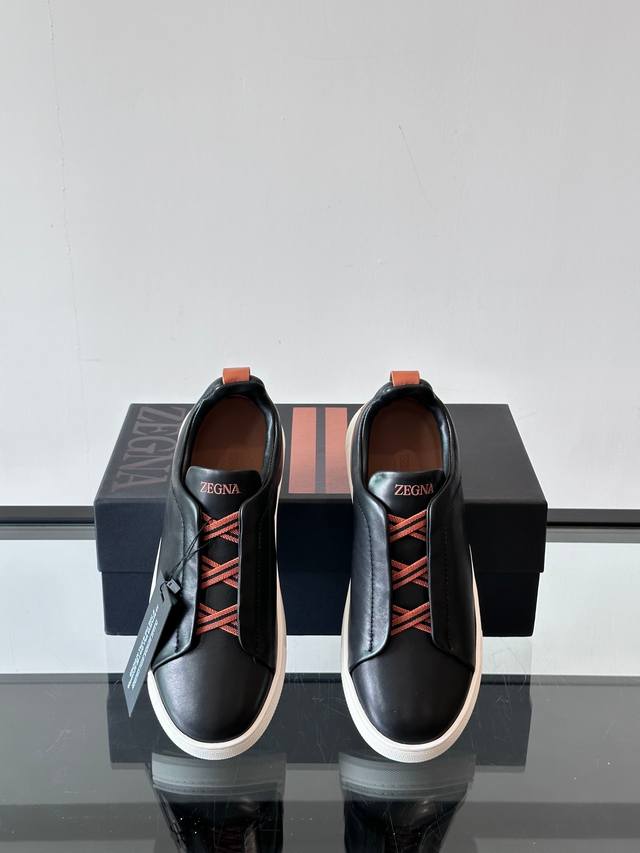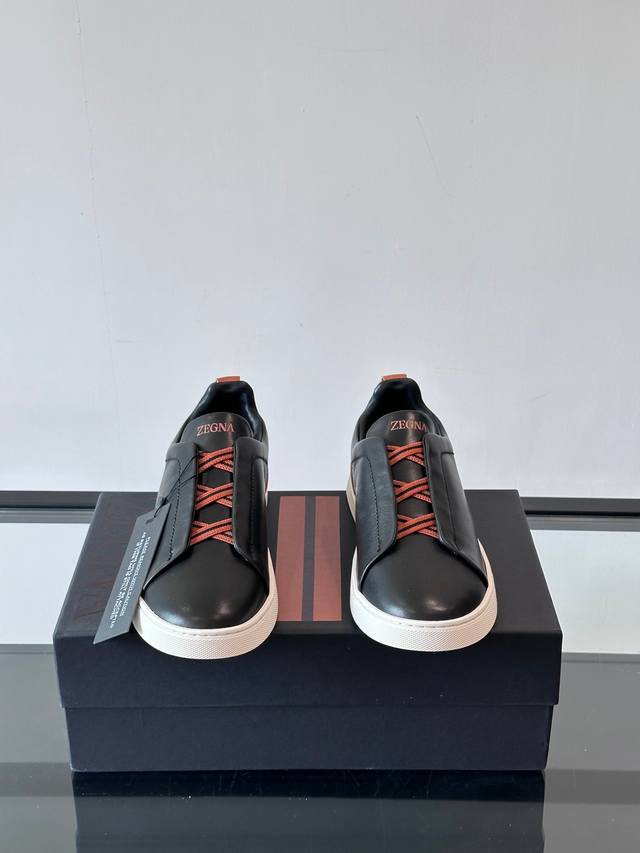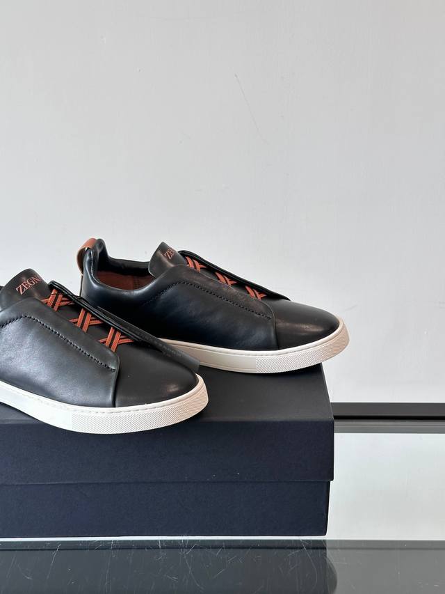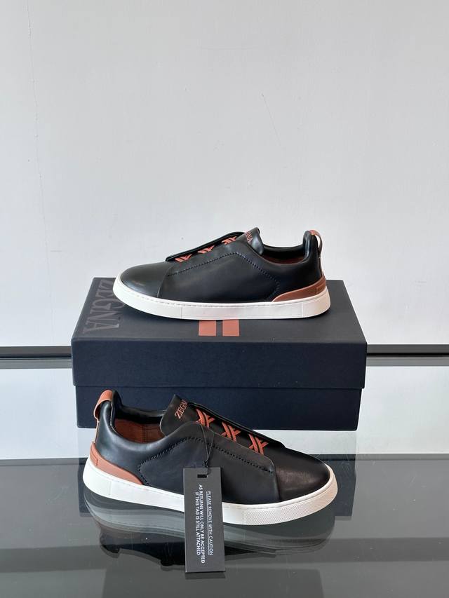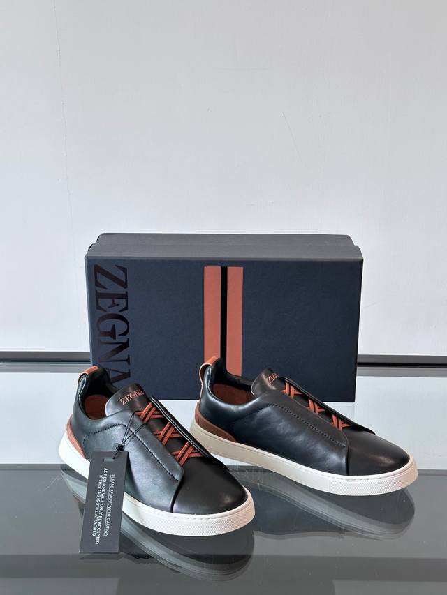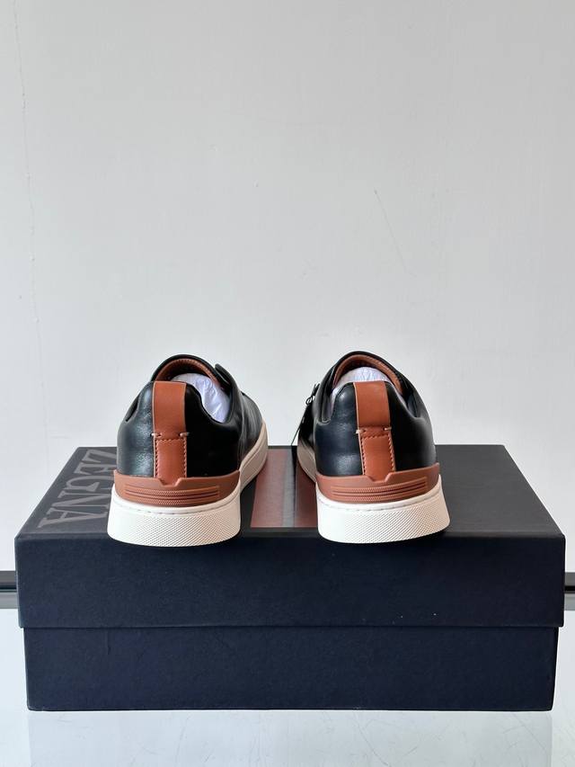 / Zegna 杰尼亚 新款男士低帮皮革运动鞋,选用进口牛皮打造,丰富的工艺细节,鞋底骆马皮革嵌饰和品牌压纹徽标细节,干净简洁的设计线条非常百搭,优雅大气,动感十足