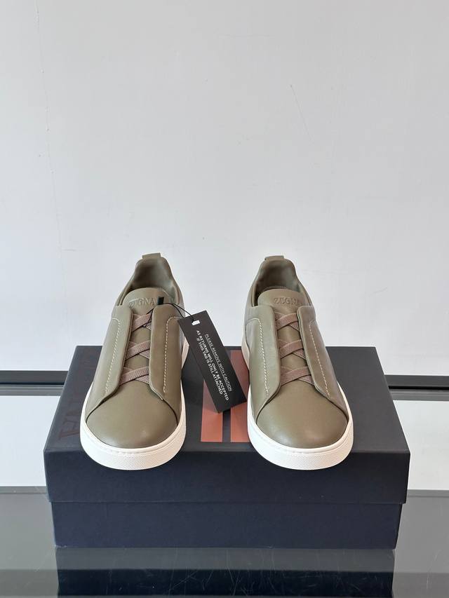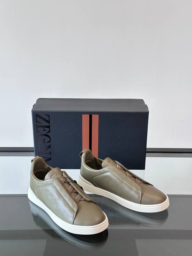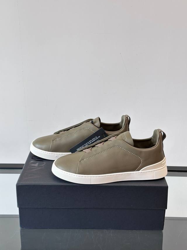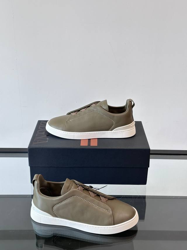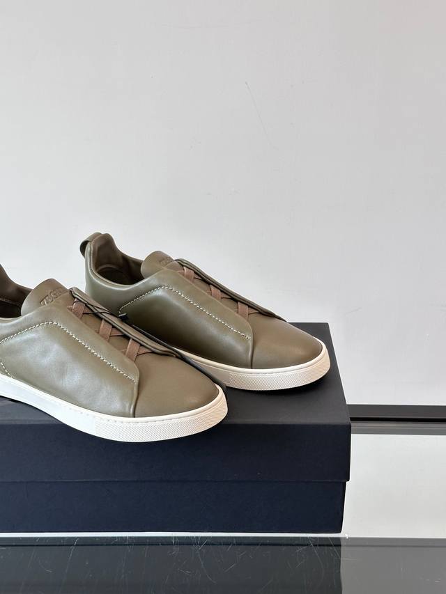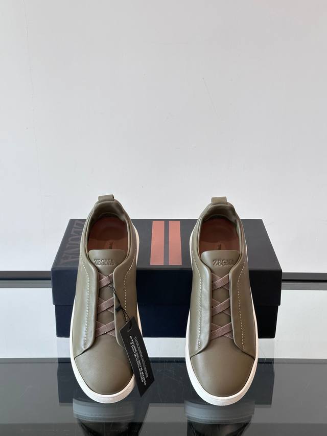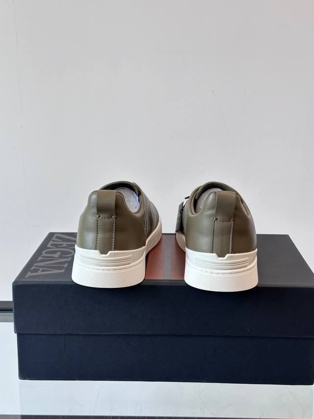 / Zegna 杰尼亚 新款男士低帮皮革运动鞋,选用进口牛皮打造,丰富的工艺细节,鞋底骆马皮革嵌饰和品牌压纹徽标细节,干净简洁的设计线条非常百搭,优雅大气,动感十足