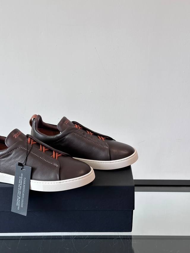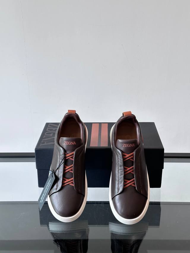 / Zegna 杰尼亚 新款男士低帮皮革运动鞋,选用进口牛皮打造,丰富的工艺细节,鞋底骆马皮革嵌饰和品牌压纹徽标细节,干净简洁的设计线条非常百搭,优雅大气,动感十足