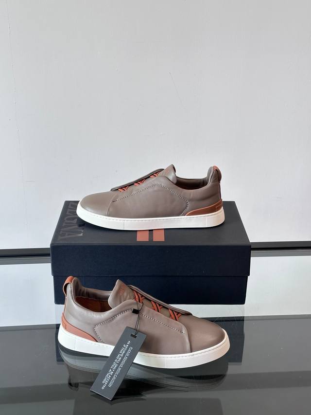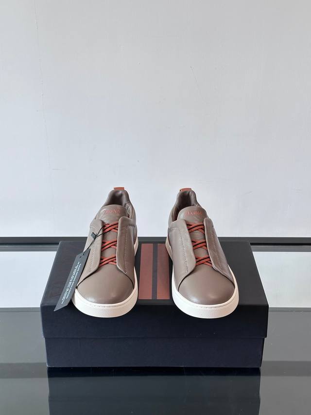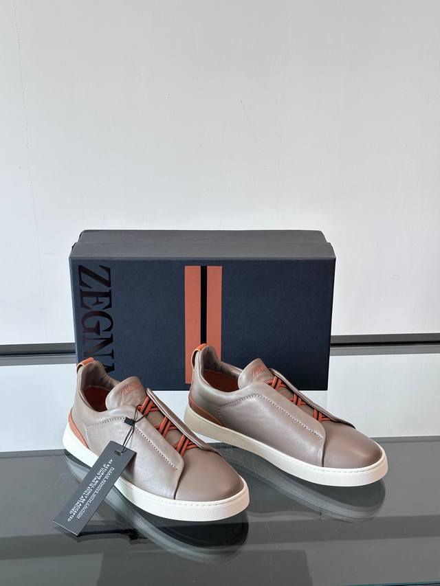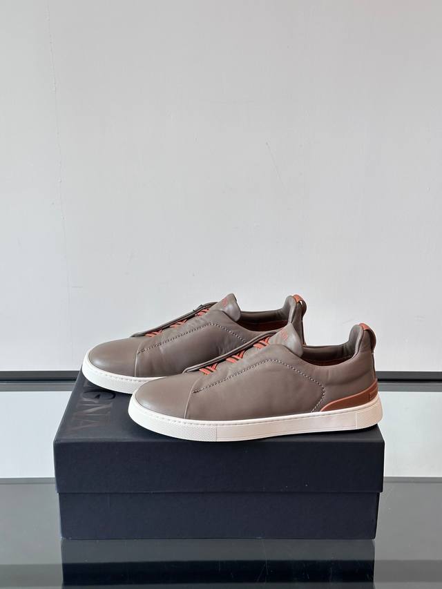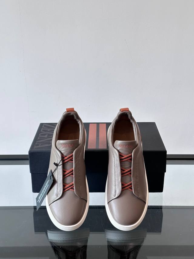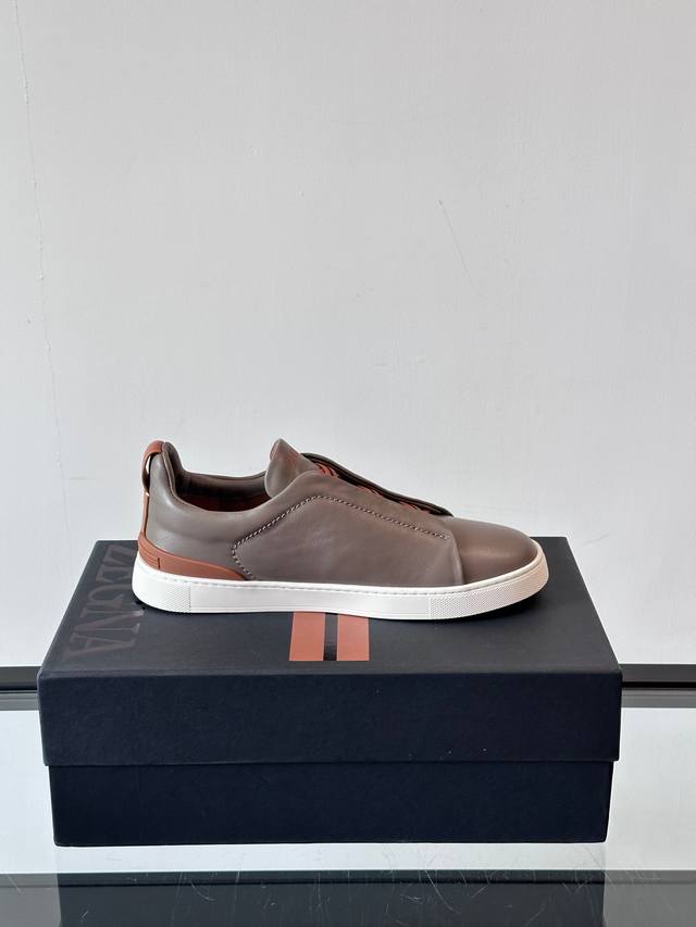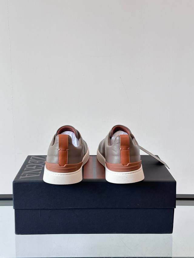 / Zegna 杰尼亚 新款男士低帮皮革运动鞋,选用进口牛皮打造,丰富的工艺细节,鞋底骆马皮革嵌饰和品牌压纹徽标细节,干净简洁的设计线条非常百搭,优雅大气,动感十足