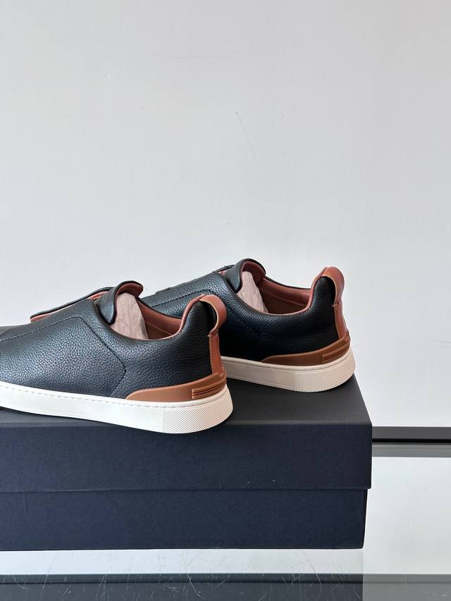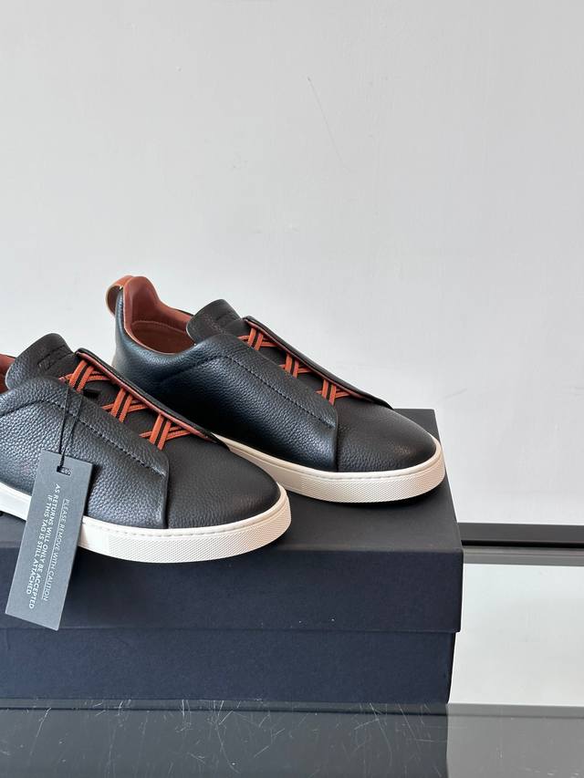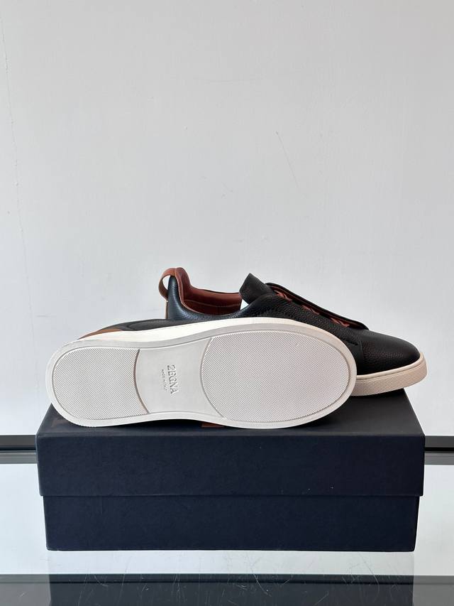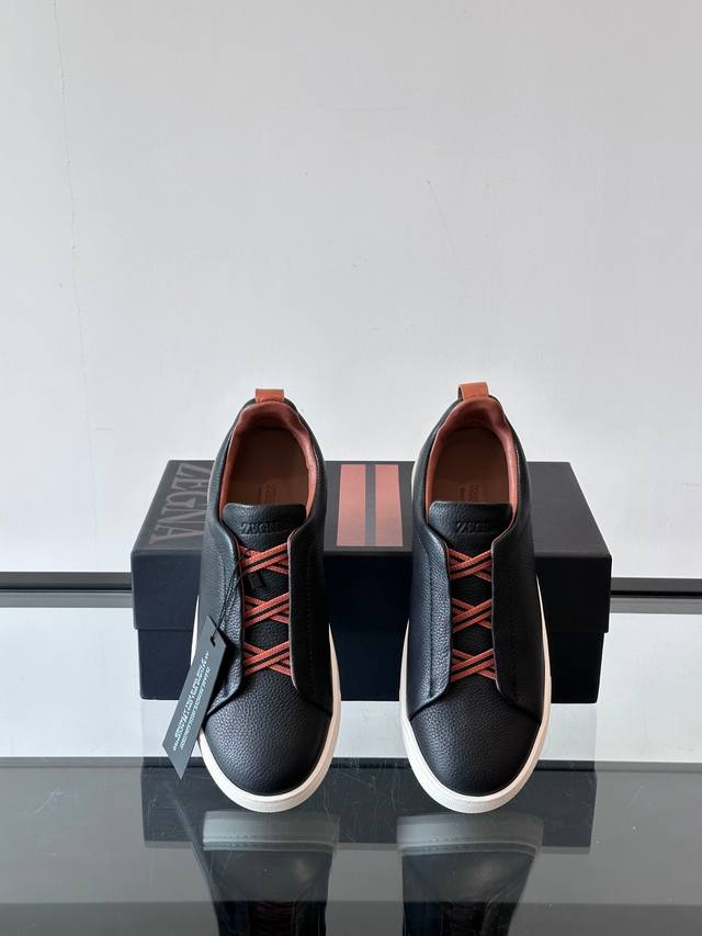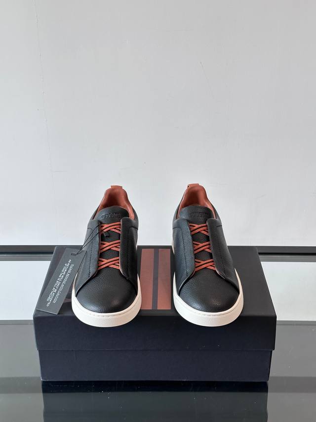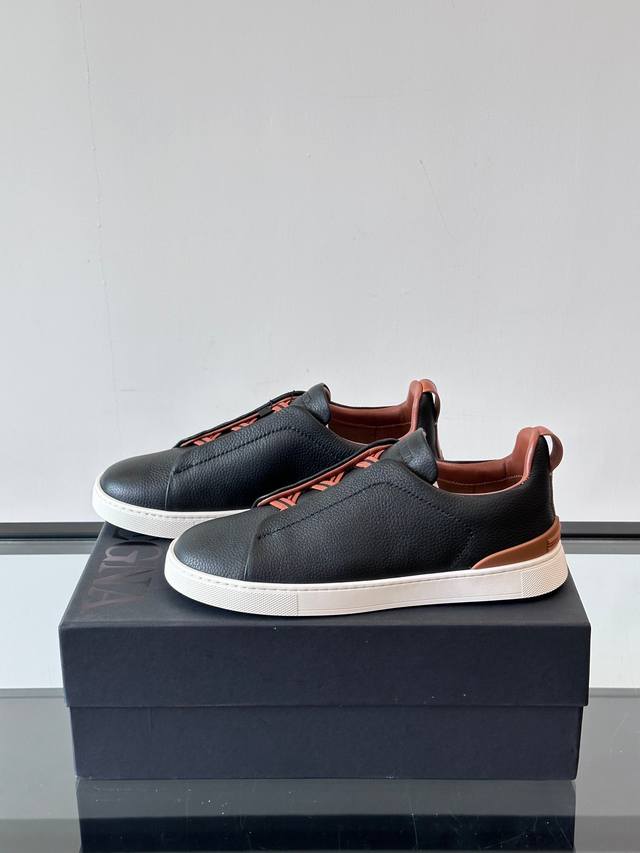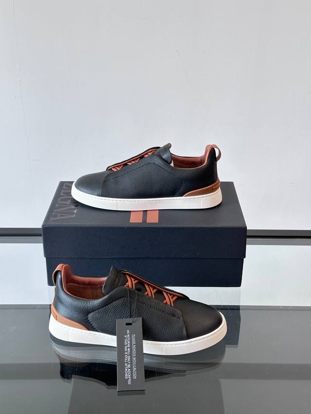 / Zegna 杰尼亚 新款男士低帮皮革运动鞋,选用进口牛皮打造,丰富的工艺细节,鞋底骆马皮革嵌饰和品牌压纹徽标细节,干净简洁的设计线条非常百搭,优雅大气,动感十足