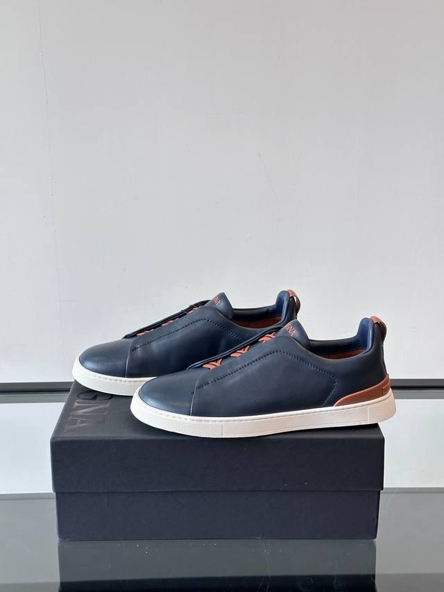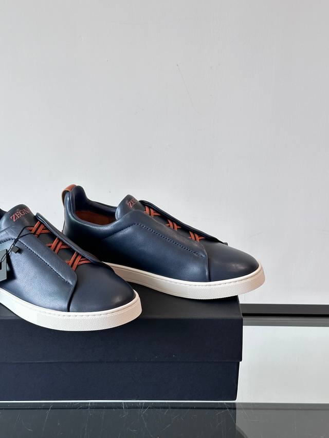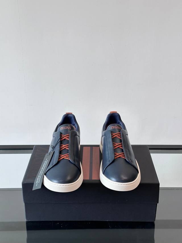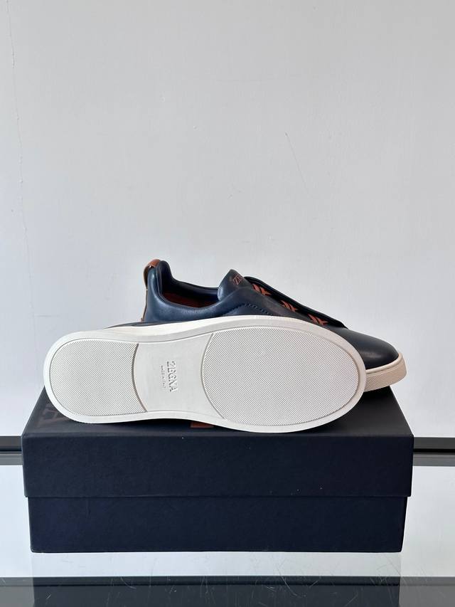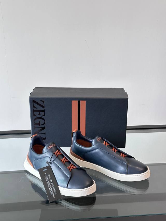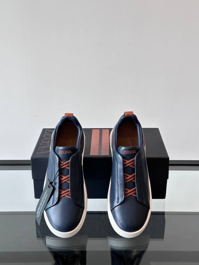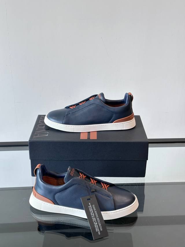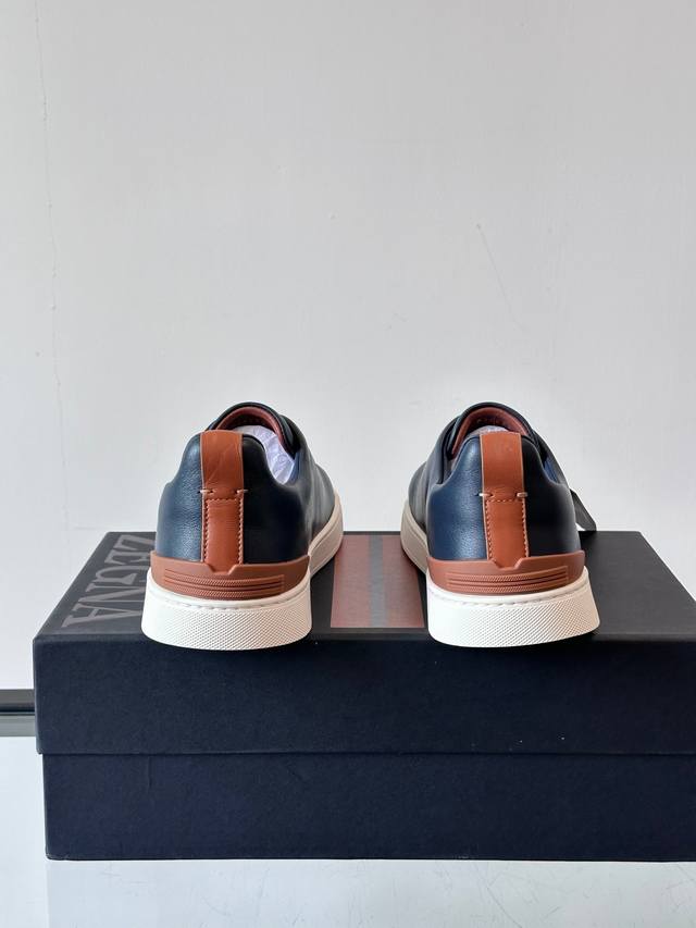 / Zegna 杰尼亚 新款男士低帮皮革运动鞋,选用进口牛皮打造,丰富的工艺细节,鞋底骆马皮革嵌饰和品牌压纹徽标细节,干净简洁的设计线条非常百搭,优雅大气,动感十足