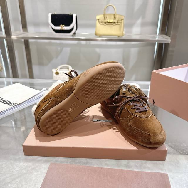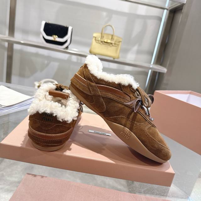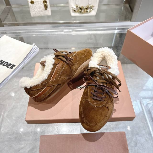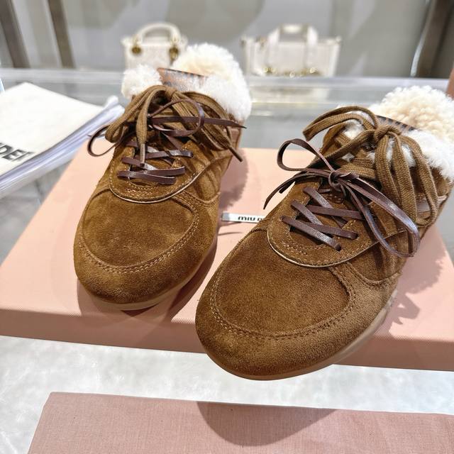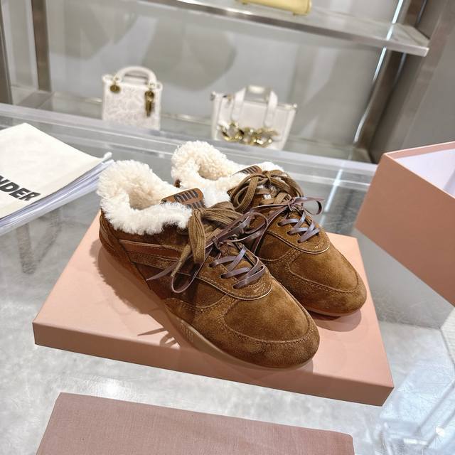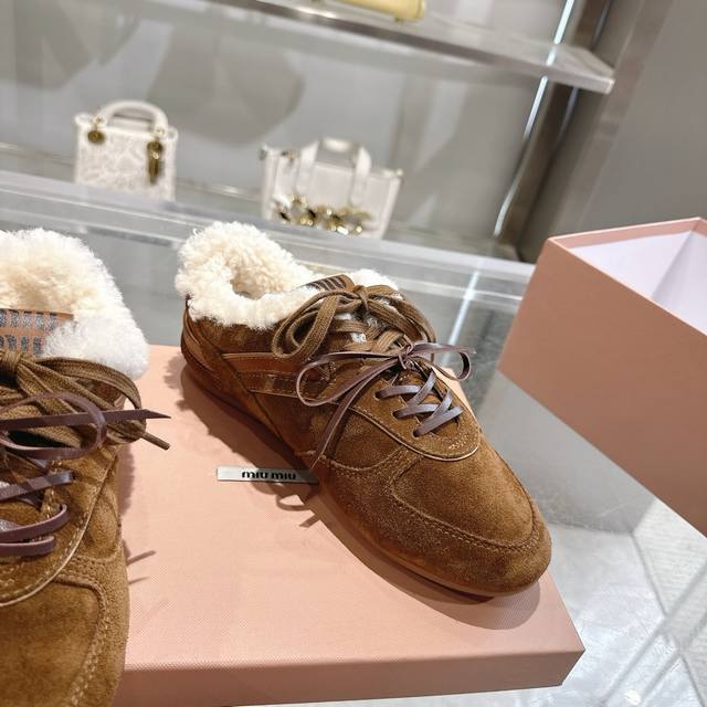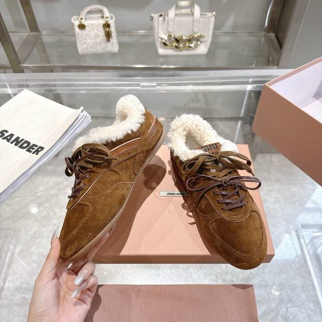 高品质出厂半拖 !顶级品质情侣款! 24ss秋冬联名款NB保暖羊毛休闲鞋擦色做旧复古运动鞋! Miu Miu 缪缪大秀上爆出的这双与New...