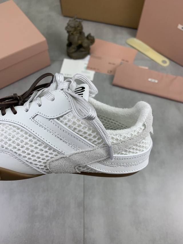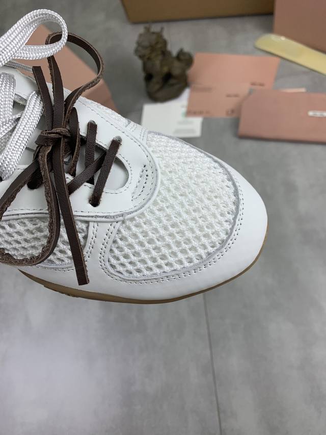 工厂p价p 实价 顶级版本Miumiu缪缪 X New Balance Nb530 休闲 运动鞋 阿甘鞋 德训鞋 Ddd 原版购入开发做货 Miu Miu X New Balance 经典Nb530运动鞋中汲取灵感推出了自己的迭代版本530Sl。该运动鞋采用解构和轻盈的设计,有棕色和米色配色,带点彷旧日的布料包覆着 New Balance 530的轮廓,刻意磨损、不均匀的皮革色调,让波鞋多了不同的个性这款联名鞋款配有双鞋带设计,包括白色、橙色、棕色和黄色鞋带,营造出随性系起的感觉,为整体感又多了几分 Bo