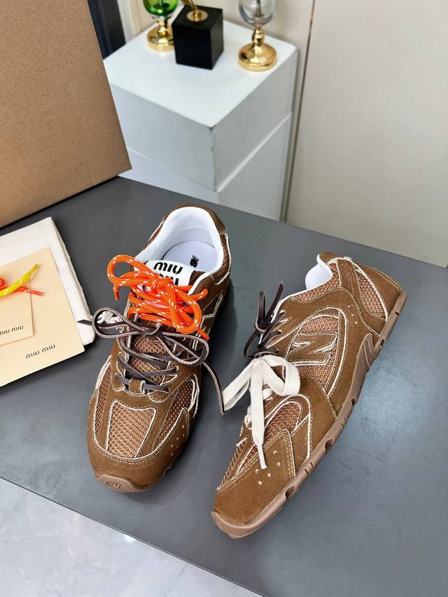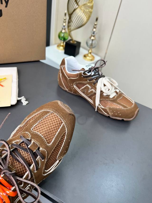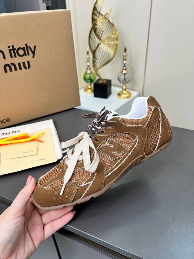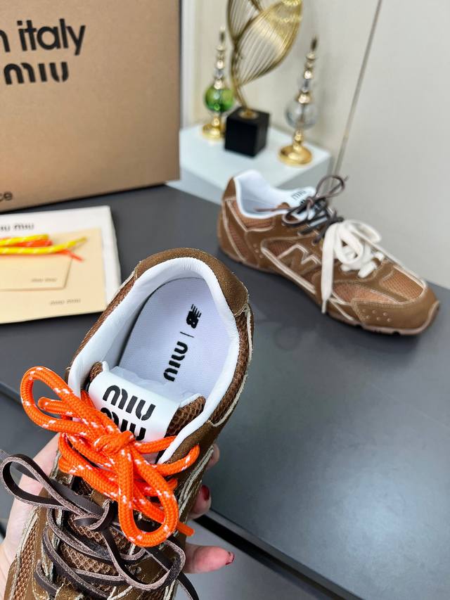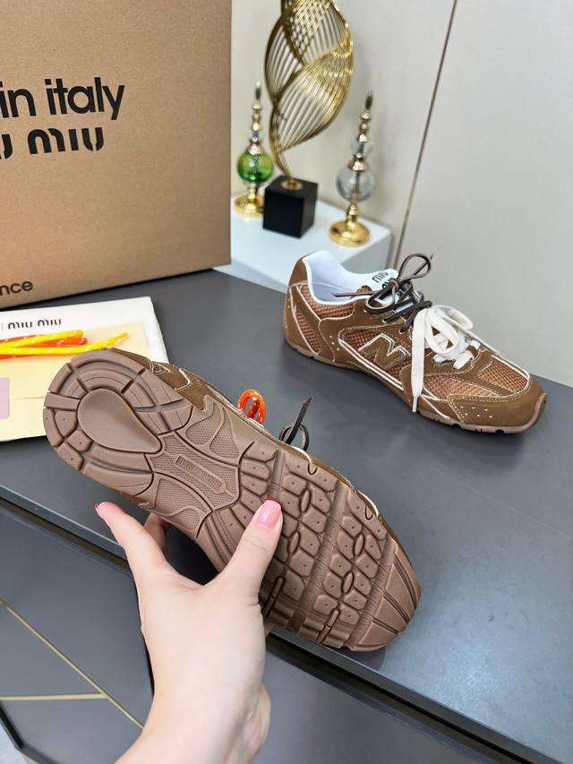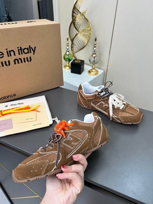 总共48个颜色网面9个颜色单鞋20个颜色半拖 皮里9个颜色半拖 毛里3个颜色毛里3个颜色内增高5厘米 4个颜色 Miumiu 缪缪 X New Balance 联名款Nb530情侣款 休闲 运动鞋 阿甘鞋 德训鞋 原版购入开发做货 Miu Miu X New Balance 经典Nb530运动鞋中汲取灵感推出了自己的迭代版本530Sl。该运动鞋采用解构和轻盈的设计,有棕色和米色配色,带点彷旧日的布料包覆着 New Balance 530的轮廓,刻意磨损、不均匀的皮革色调,让波鞋多了不同的个性这款联名鞋款配