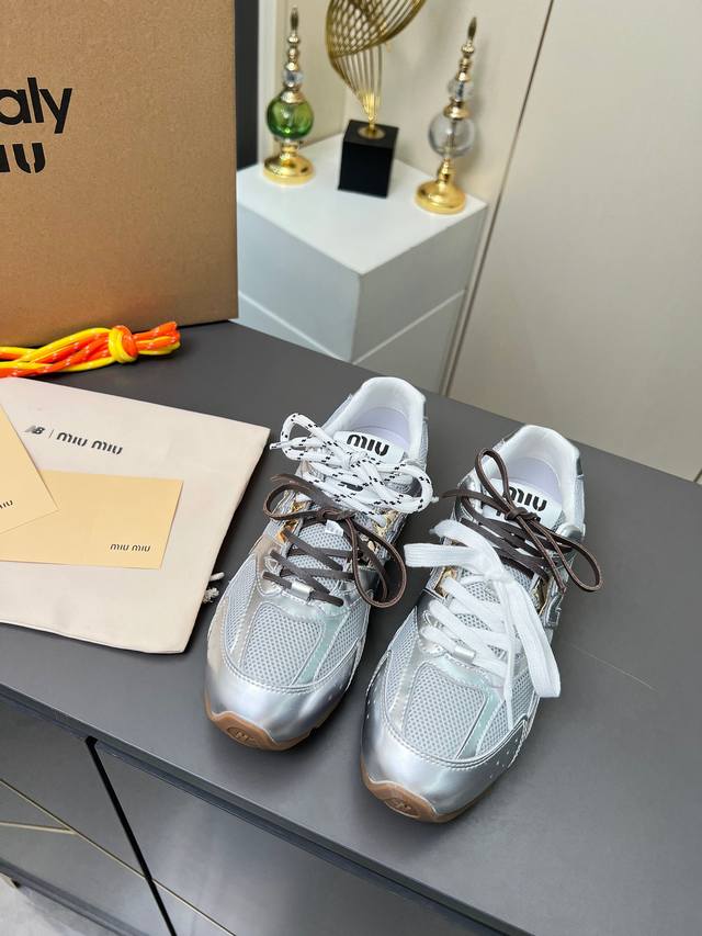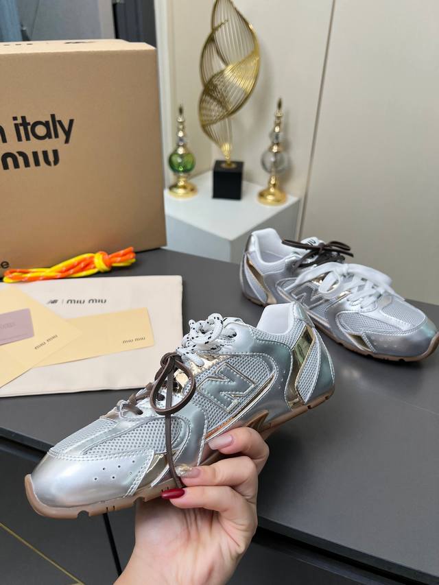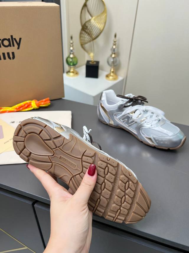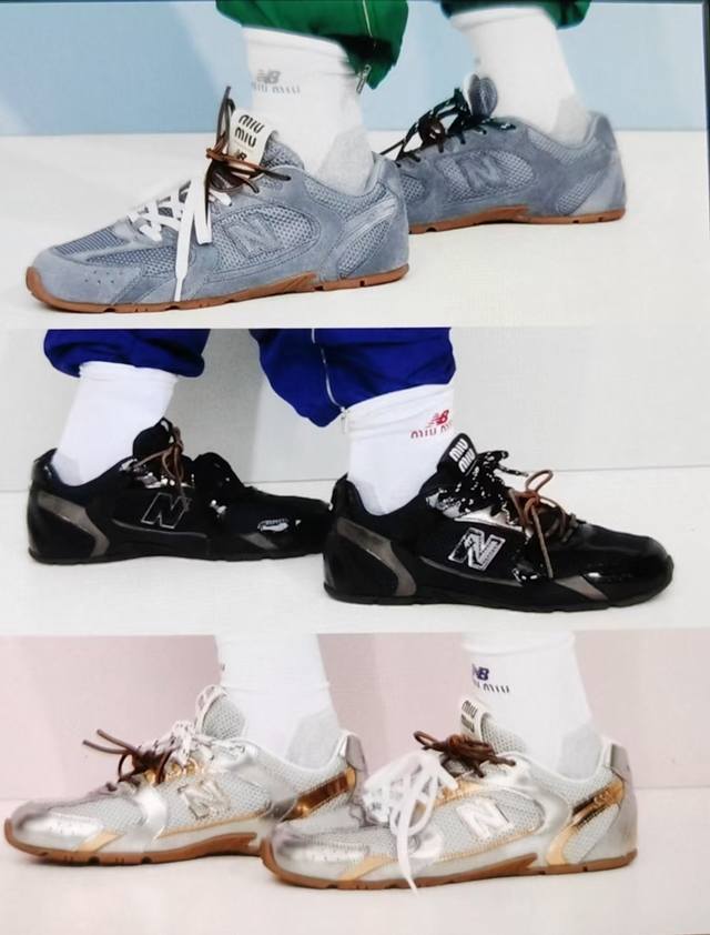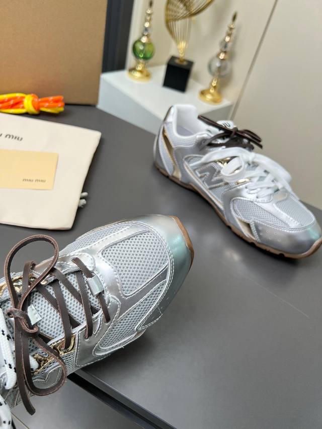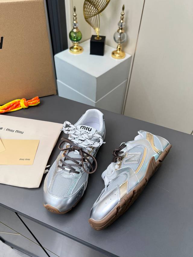 总共51个颜色网面12个颜色单鞋20个颜色半拖 皮里9个颜色半拖 毛里3个颜色毛里3个颜色内增高5厘米 4个颜色 DDD Miumiu 缪缪 X New Balance 联名款Nb530情侣款 休闲 运动鞋 阿甘鞋 德训鞋 DDD 原版购入开发做货 Miu Miu X New Balance 经典Nb530运动鞋中汲取灵感推出了自己的迭代版本530Sl。该运动鞋采用解构和轻盈的设计,有棕色和米色配色,带点彷旧日的布料包覆着 New Balance 530的轮廓,刻意磨损、不均匀的皮革色调,让波鞋多了不同的