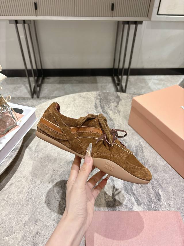 皮里 , Miumiu X New Balance 联名款Nb运动鞋 Miu Miu 缪缪大秀上爆出的这双与New Balance 新百伦联名款运动 球鞋 后全球各大代购官网火爆上市. 2025走秀场曝光、非常留行的美拉德配色平底鞋,双鞋带设计、独特风格,非常有质感!上脚非常轻便 百搭! 面料: 原版定制牛反绒 内里: 羊毛里 皮里 鞋底: 原版开模牛筋大底 底厚:2.5Cm Size: 女35-39 40订做不退换