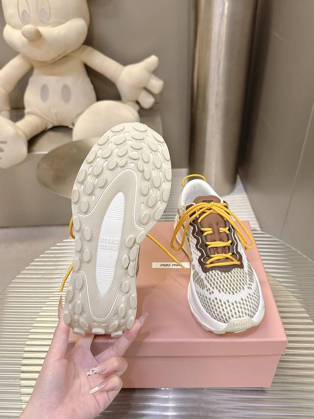 Miu Miu 的鞋履产品曾以轻盈、贴地的鞋型多次制造火热话题,从致敬 Samba、Mexico 66,到与 New Balance 合作推出薄底运动鞋,引发众多品牌效仿。而如今薄底鞋已成主流时 Miu Miu 再次 反向操作 ,推出具有厚