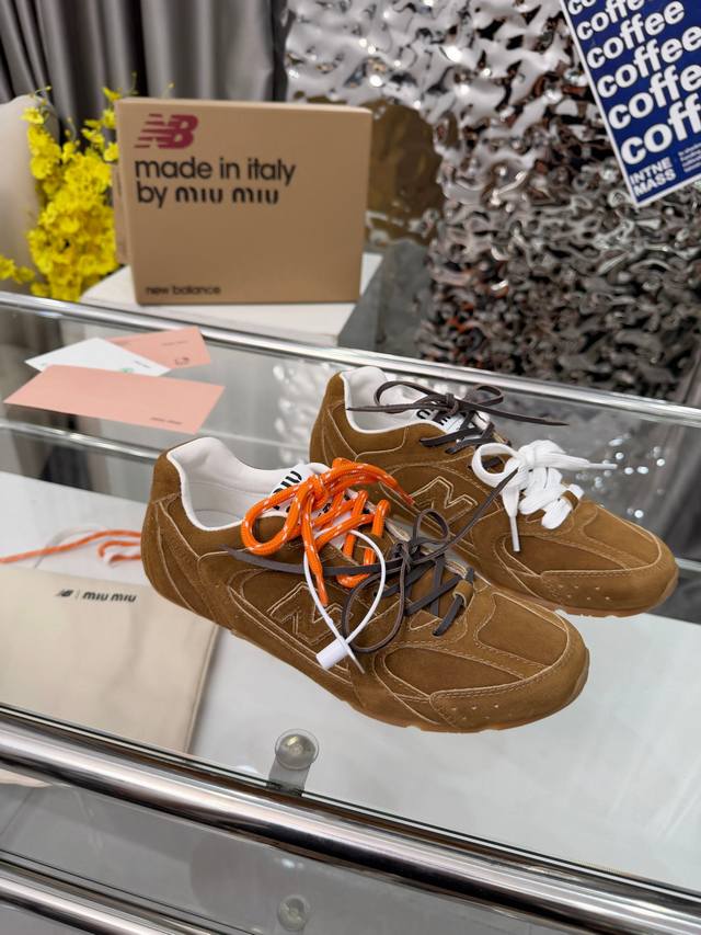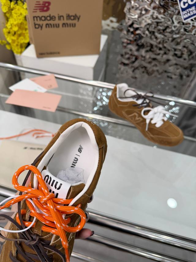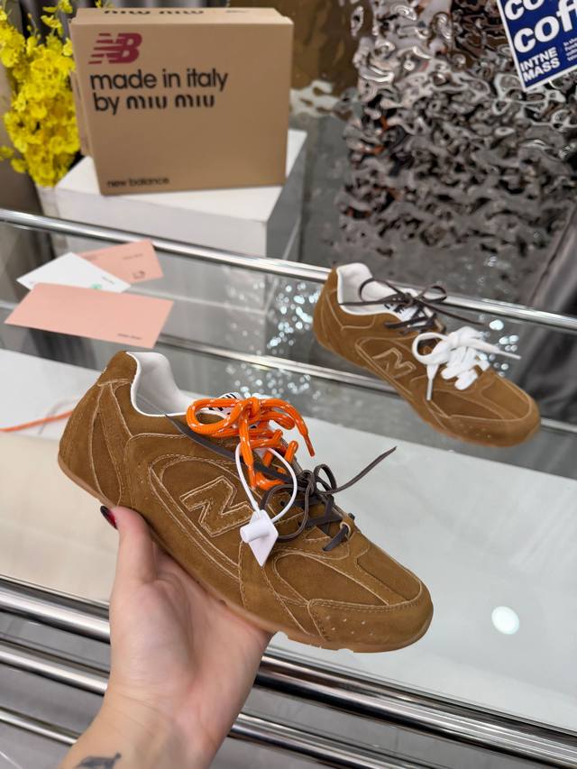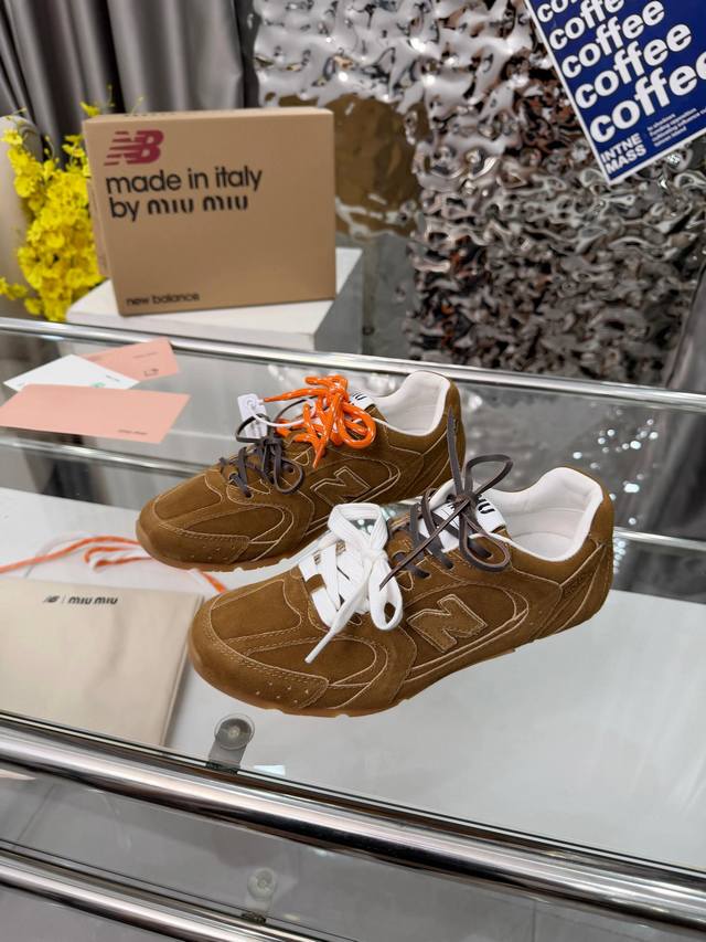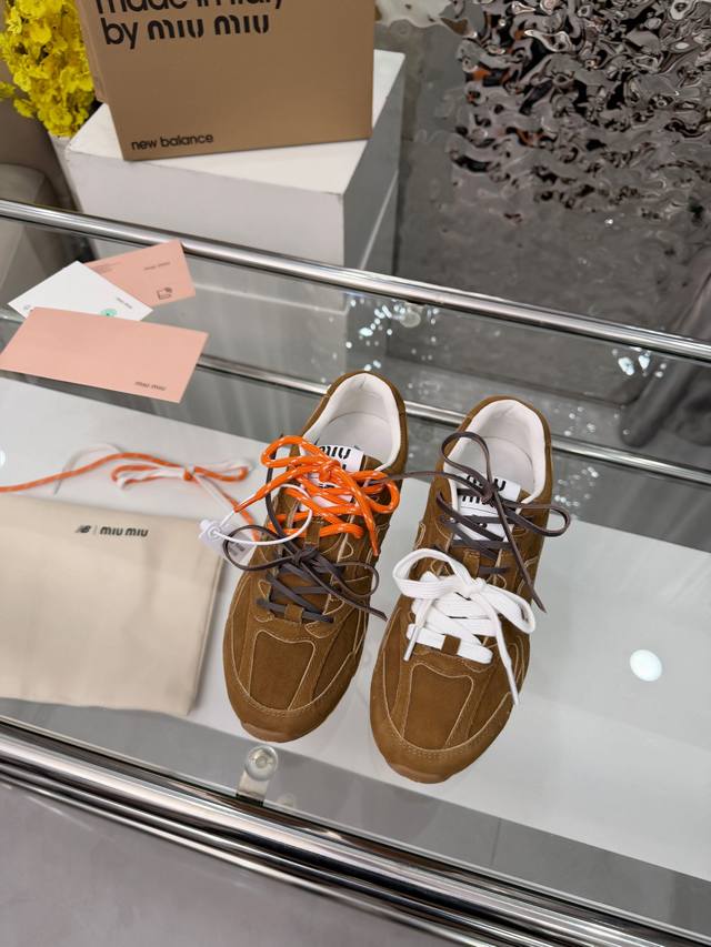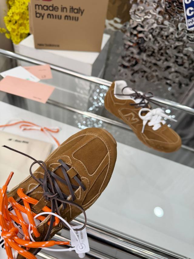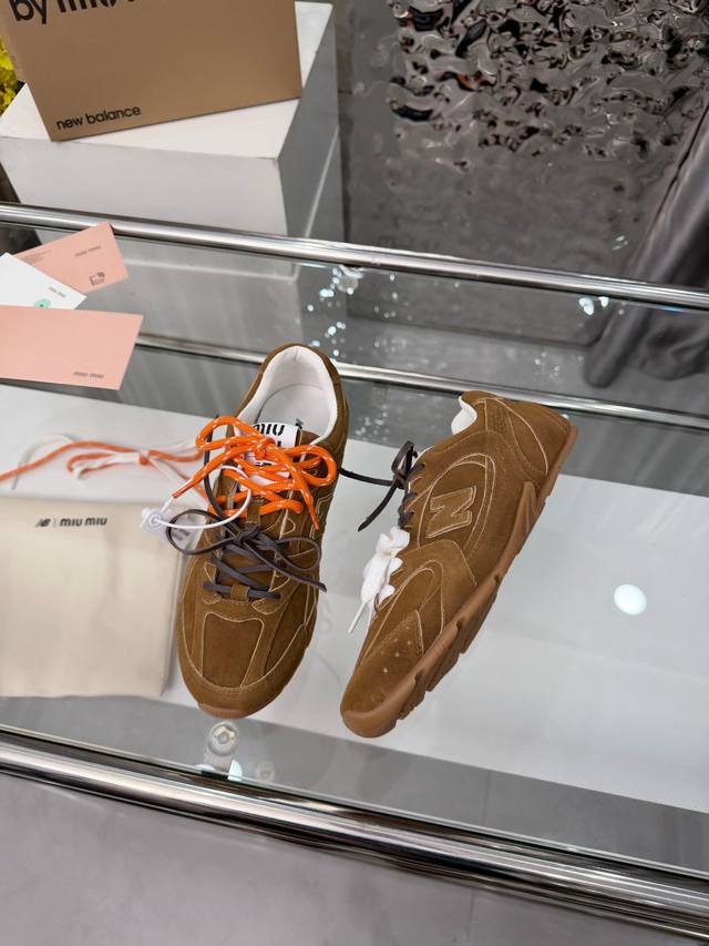 情侣款Miumiu缪缪 X New Balance Nb 休闲 运动鞋 阿甘鞋 德训鞋 Ddd 原版购入开发做货 Miu Miu X New Balance 经典Nb 运动鞋中汲取灵感推出了自己的迭代版本 Sl。该运动鞋采用解构和轻盈的设计,有棕色和米色配色,带点彷旧日的布料包覆着 New Balance 的轮廓,刻意磨损、不均匀的皮革色调,让波鞋多了不同的个性这款联名鞋款配有双鞋带设计,包括白色、橙色、棕色和黄色鞋带,营造出随性系起的感觉,为整体感又多了几分 Boyish 以及率性感 Ddd 面料: 原