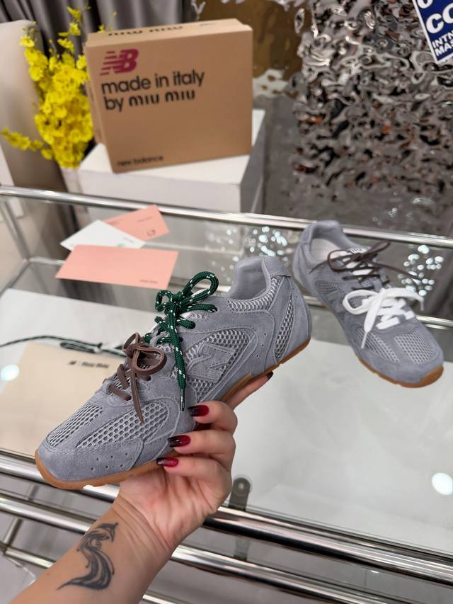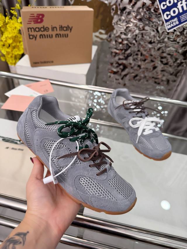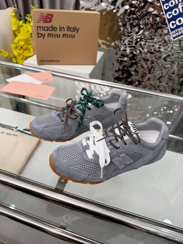 情侣款Miumiu缪缪 X New Balance Nb 休闲 运动鞋 阿甘鞋 德训鞋 Ddd 原版购入开发做货 Miu Miu X New Balance 经典Nb 运动鞋中汲取灵感推出了自己的迭代版本 Sl。该运动鞋采用解构和轻盈的设计,有棕色和米色配色,带点彷旧日的布料包覆着 New Balance 的轮廓,刻意磨损、不均匀的皮革色调,让波鞋多了不同的个性这款联名鞋款配有双鞋带设计,包括白色、橙色、棕色和黄色鞋带,营造出随性系起的感觉,为整体感又多了几分 Boyish 以及率性感 Ddd 面料: 原
