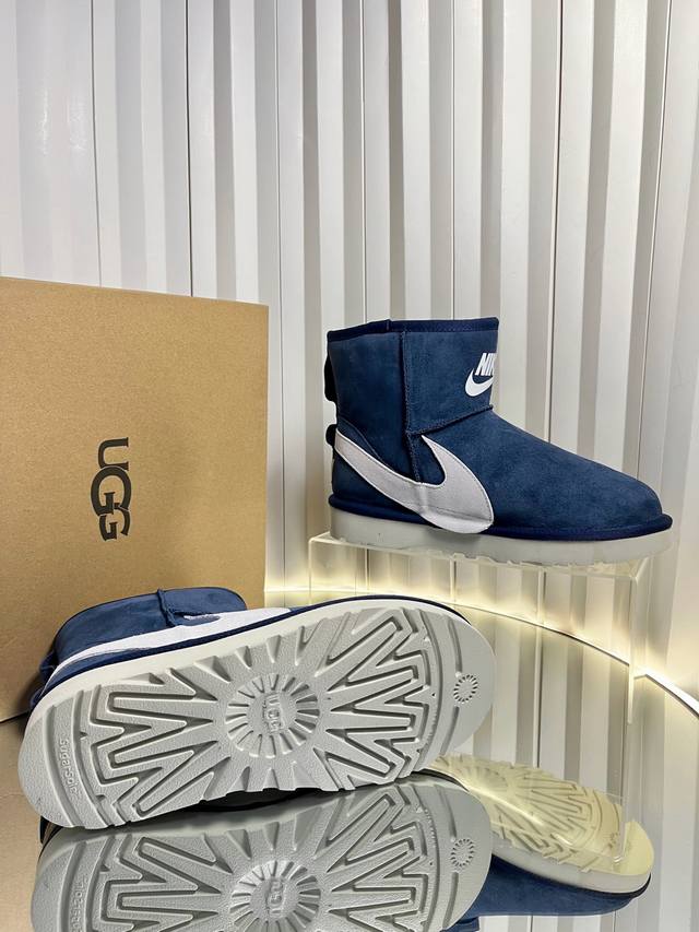 代购级 DDD 运动版 Ugg 联名 Nike 25Ss 秋冬保暖带 雪地靴 DDD 鞋面采用翻毛皮材质,内里填充羊毛,实现保暖与质感的结合。中筒靴型搭配侧边扣带设计,既提升了造型的时尚感,又可根据穿搭需求调节靴筒形态,如翻折变换风格。厚底设计兼具增高效果,适合冬季抗寒场景,能适配休闲、街头等多种穿搭风格。 DDD Ugg 以羊皮毛一体雪地靴闻名,此类带扣款式属于品牌经典产品线的延伸,既保留了“温暖舒适”的核心基因,又通过金属扣等细节增强时尚属性,常成为秋冬季节明星、潮流达人的搭配选择。 DDD 鞋面:牛