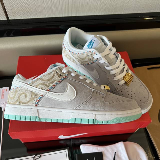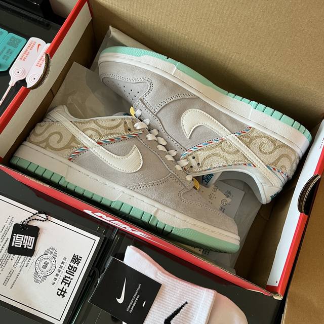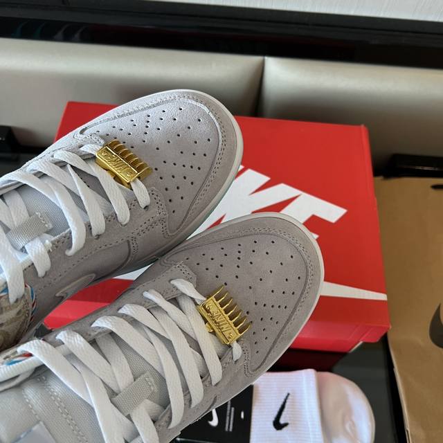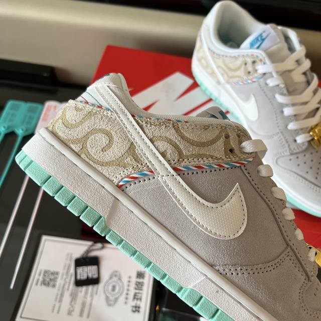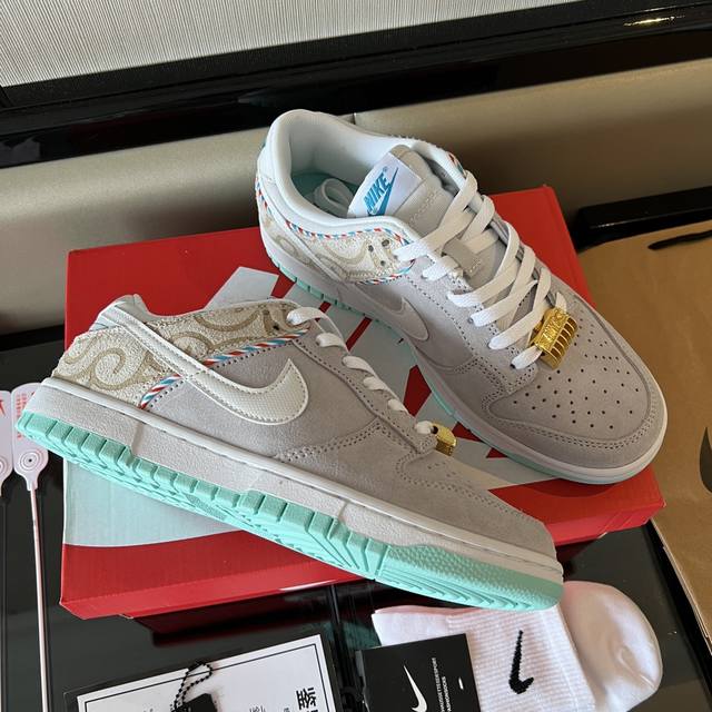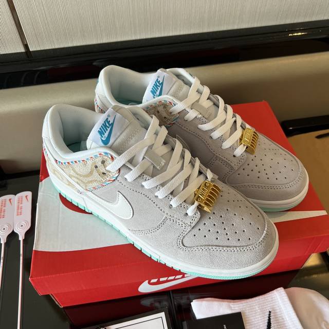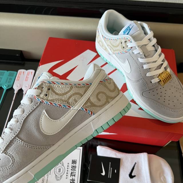 / 全毒包装:毒卡一张 毒扣一对 手提袋 配送耐克帮袜子一副。 DDD 面料:头层牛皮+麂皮。大底:原*开模双色大底。Nike Dunk Low理发店 蓝灰棕 黑蓝