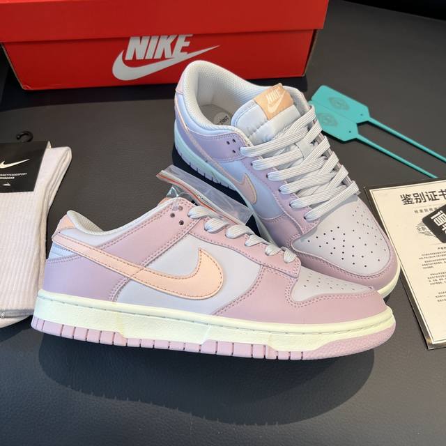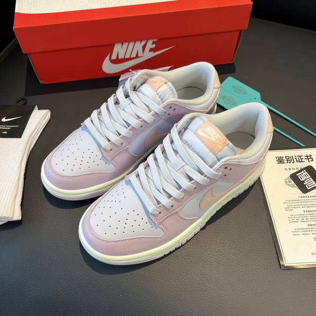 FFF 全毒真空包装:扫毒卡一张 毒扣一对 手提袋 一个配送耐克高帮纯棉袜子一副。 DDD 面料:头层牛皮+麂皮。大底:原*开模双色大底。 Nike Dunk白粉蓝紫彩蛋经典复古休闲低帮板鞋 Dd150 01。码数:36-46 DDD