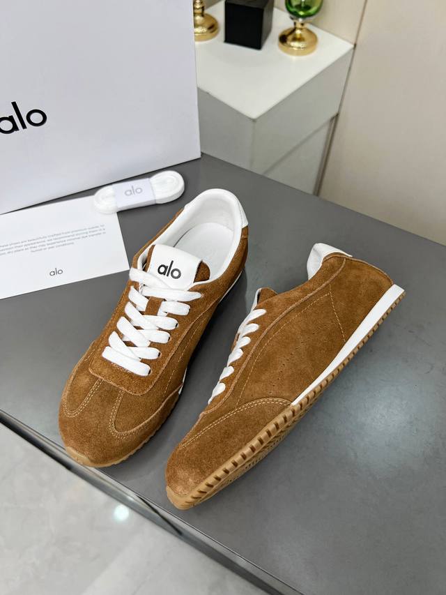 Alo25Ss新款德训鞋舒适运动休闲款阿甘鞋 DDD Alo比耐克更懂女生!上脚超级百搭!而且超级舒适!是薄底款上脚一点都不沉重!非常轻便!套上袜套搭配更好看!而且还是明星同款推荐~上脚超级显腿细!超级适合我们小个子女生~鞋子整体也是经典的牛反绒设计搭配鞋面细腻的纹路肌理感! DDD 面料:进口牛绒 DDD 内里:羊皮内里 DDD 大底:原版一比一开模大底 DDD 码数:女码 35--40,出厂价p DDD 码数:男码 39--45,出厂价p DDD
