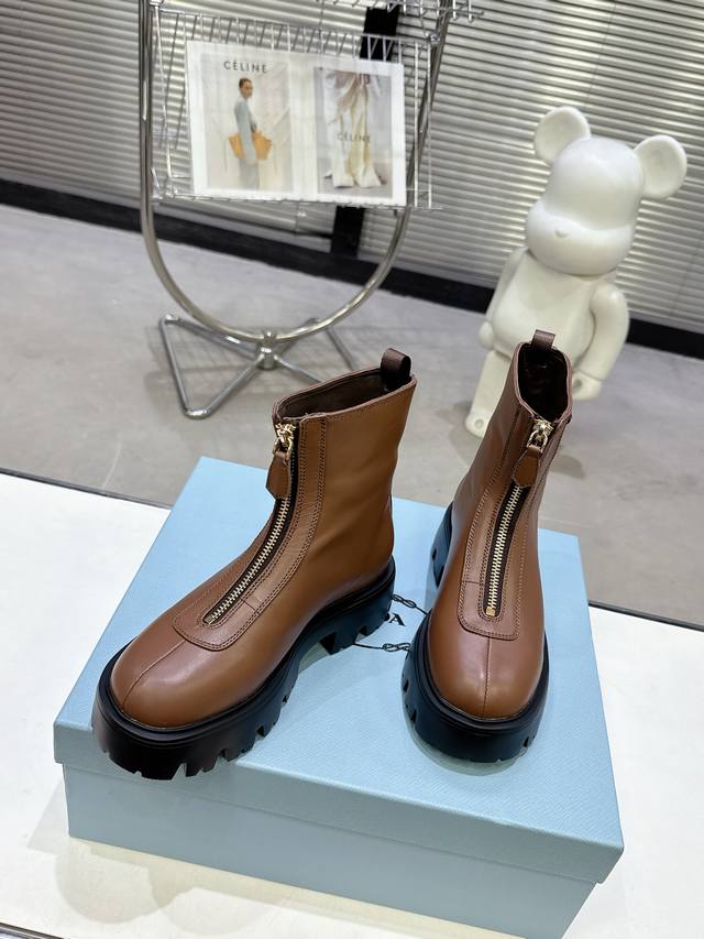 Prada 普拉达秋冬新款经典三角标一脚蹬马丁靴 王炸女靴 短靴 冬天买不到的系列,绝对是今年的大爆款!!贼好看!Prada靴子真的很哇塞!上脚大气显腿瘦气质这