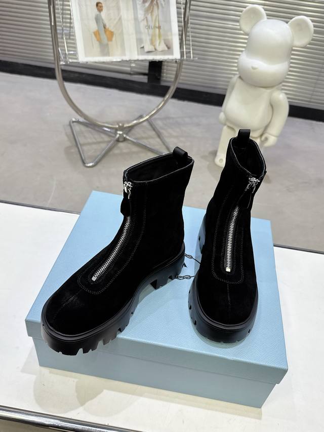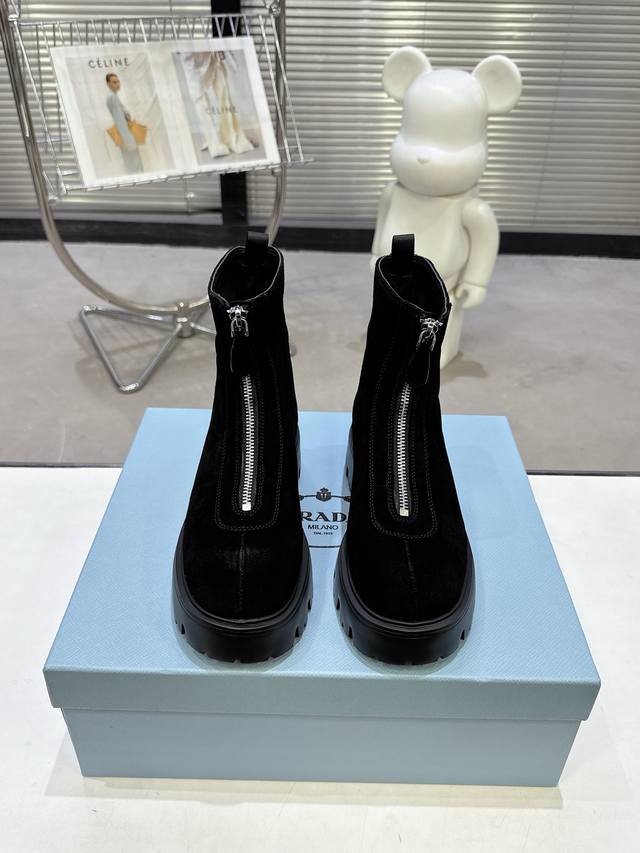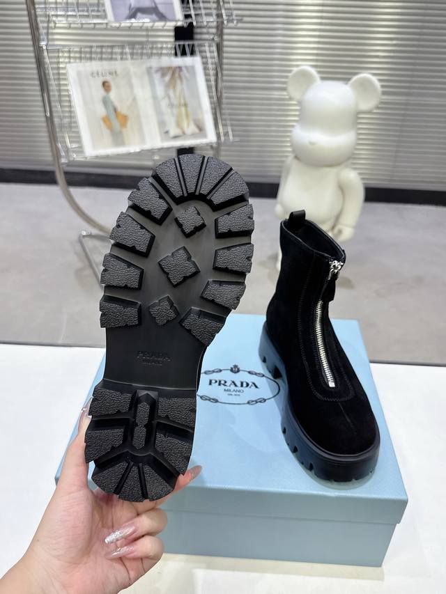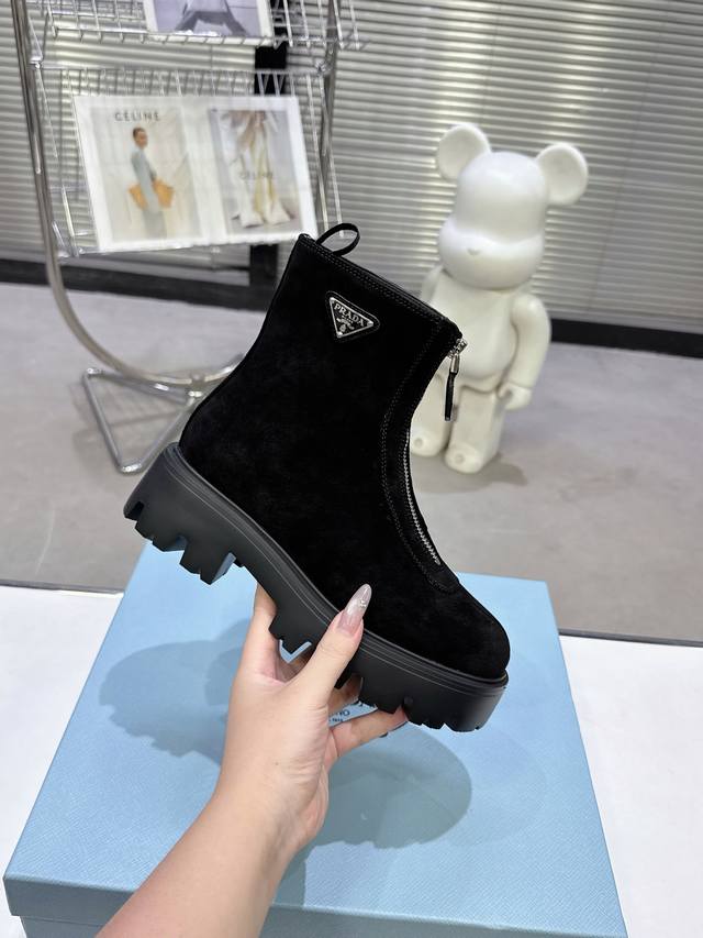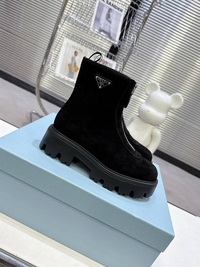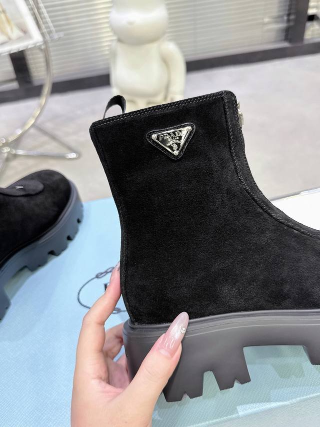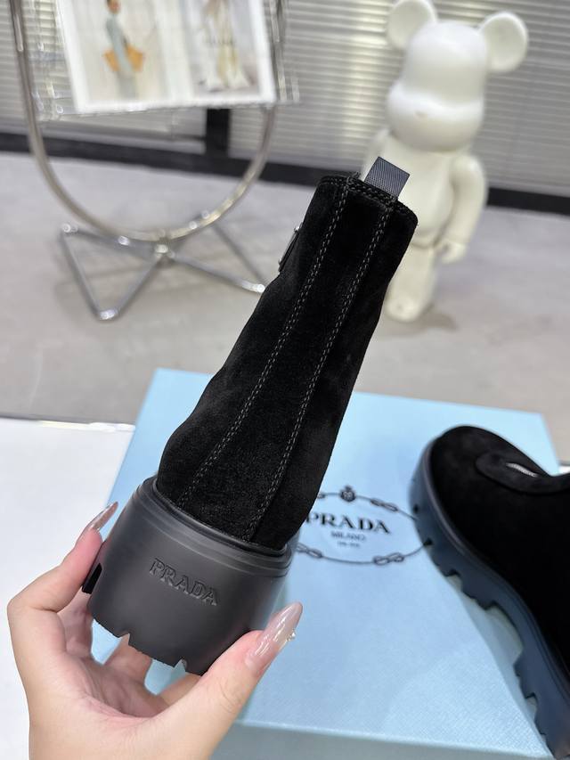 Prada 普拉达秋冬新款经典三角标一脚蹬马丁靴 王炸女靴 短靴 冬天买不到的系列,绝对是今年的大爆款!!贼好看!Prada靴子真的很哇塞!上脚大气显腿瘦气质这