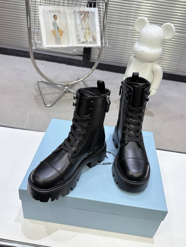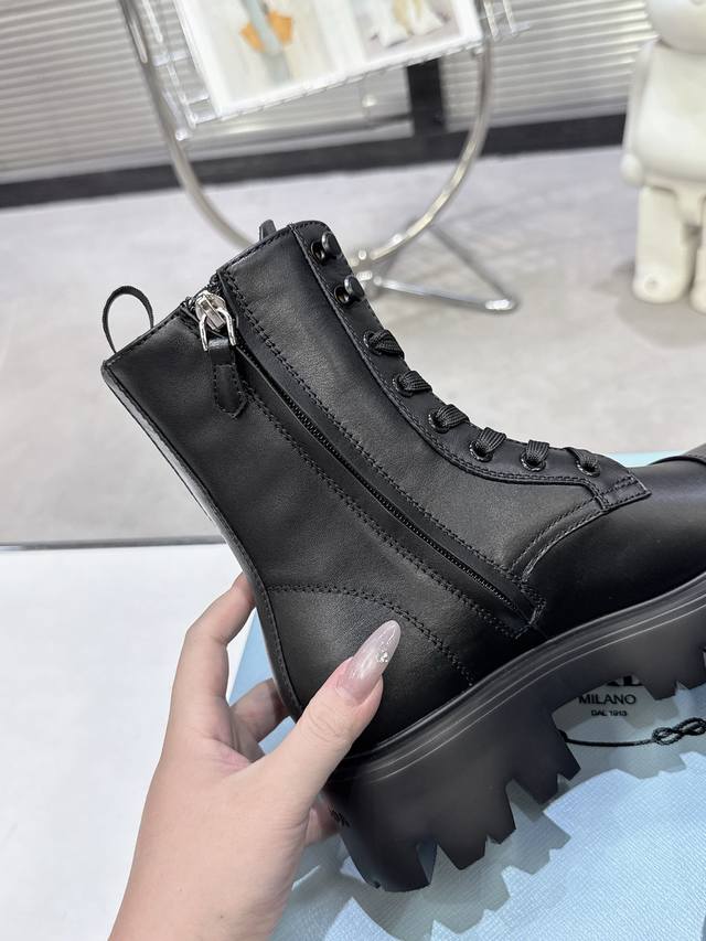 Prada 普拉达经典三角标一脚蹬马丁靴王炸女靴 短靴 冬天买不到的系列,绝对是今年的大爆款!!贼好看!Prada靴子真的很哇塞!上脚大气显腿瘦气质这块刚好拿捏 全系列采用多种进口材料:进口高丝光牛皮,牛皮 ,内里丝绸牛皮里 大底:橡胶发泡底,轻便舒适! Size:35-40 41 订做不退换