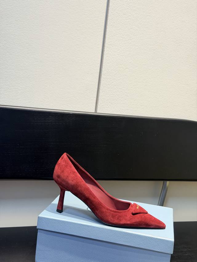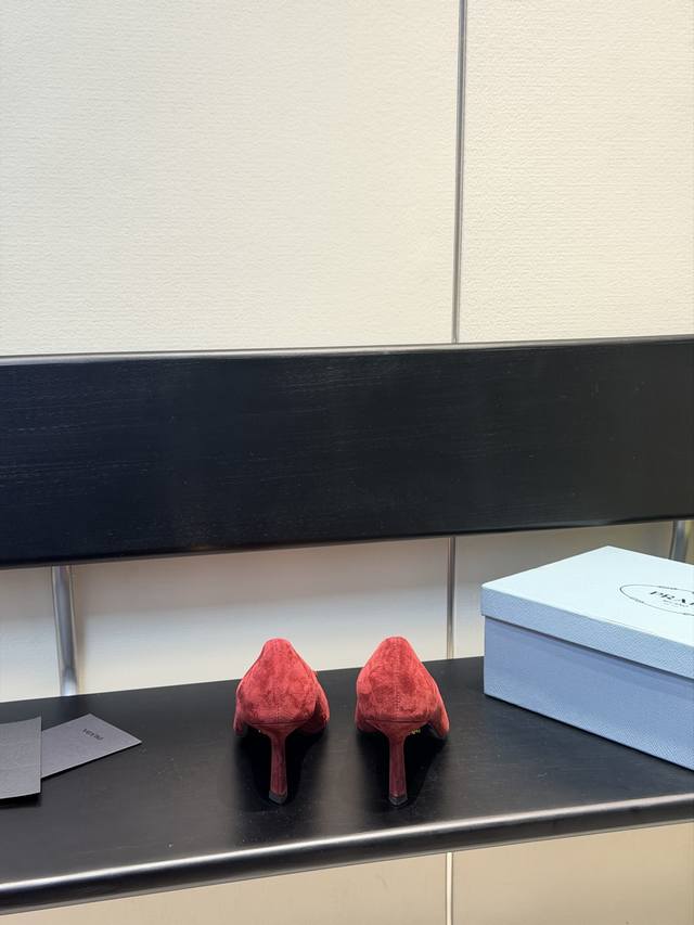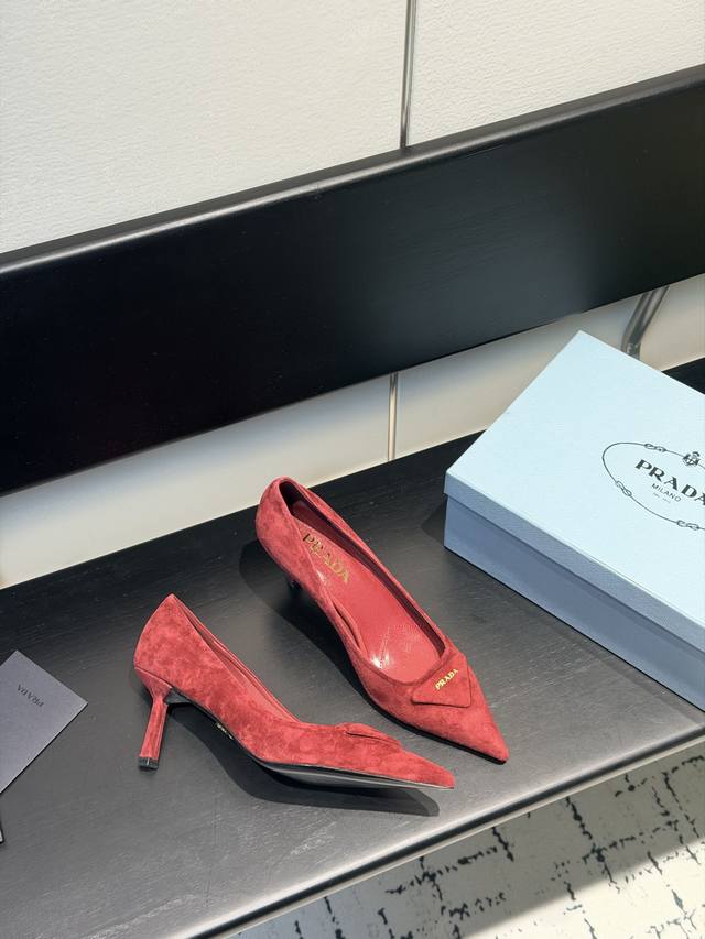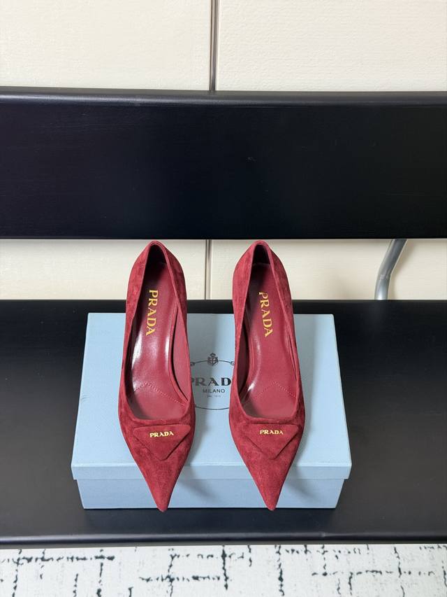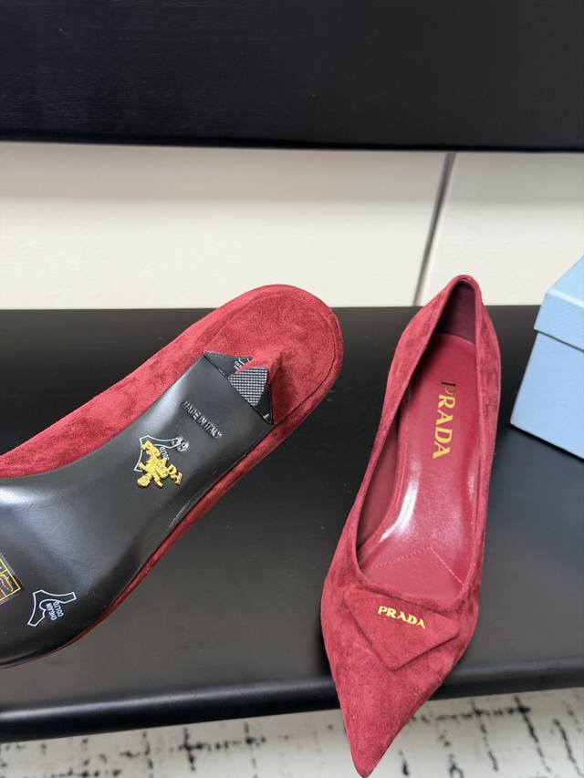 Prada 普拉达 25 出厂价Pp羊猄面 DDD 专柜走秀款尖头单鞋 三角扣标 高跟 早春走秀款! DDD 鞋面:高定制漆皮、羊猄面 DDD 内里:进口水染羊