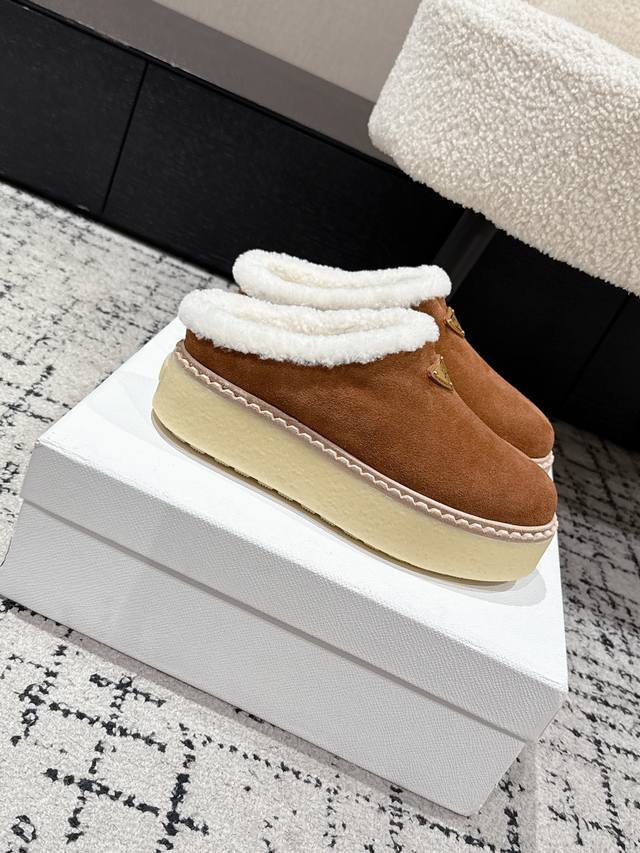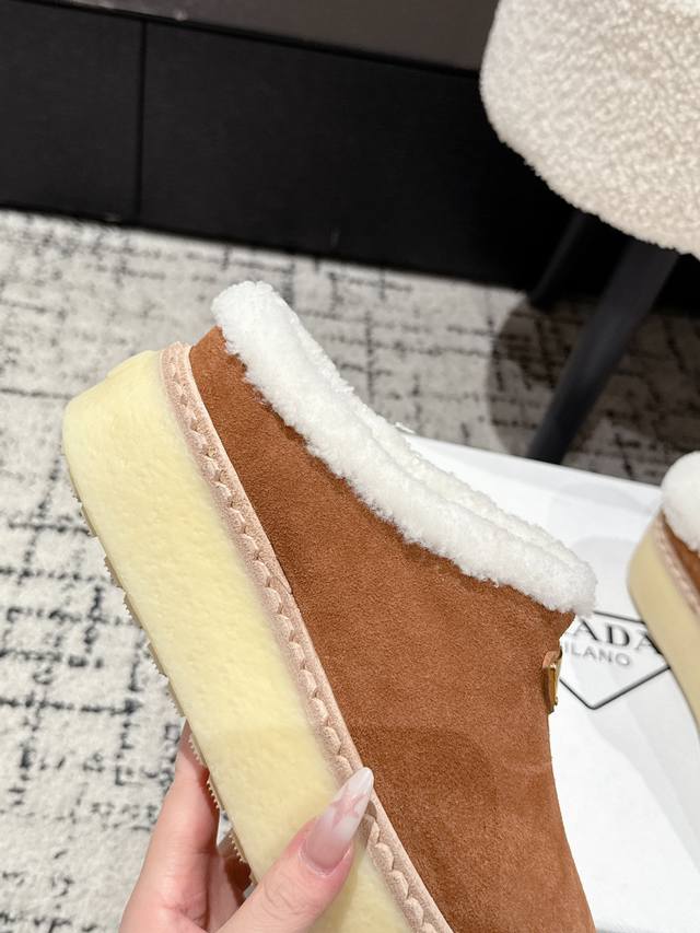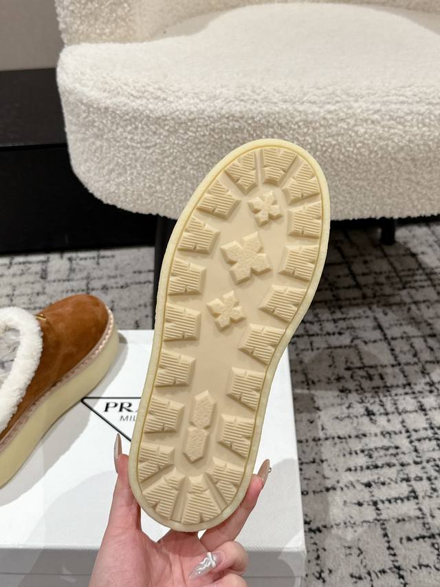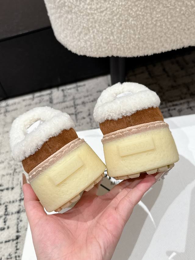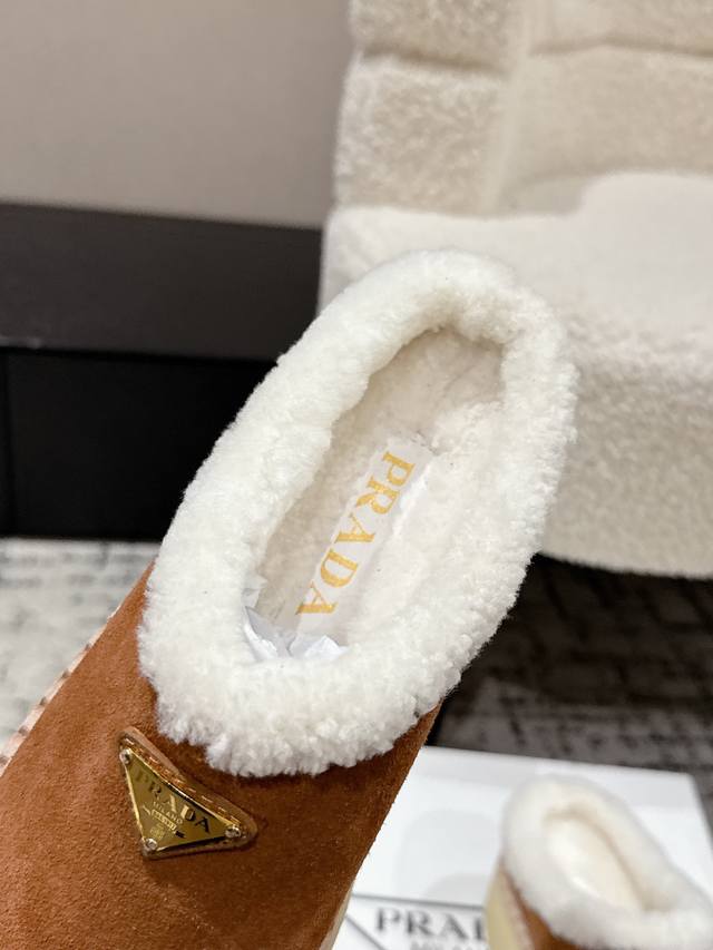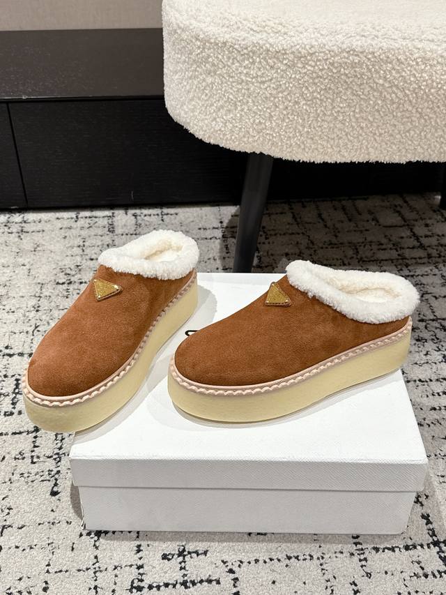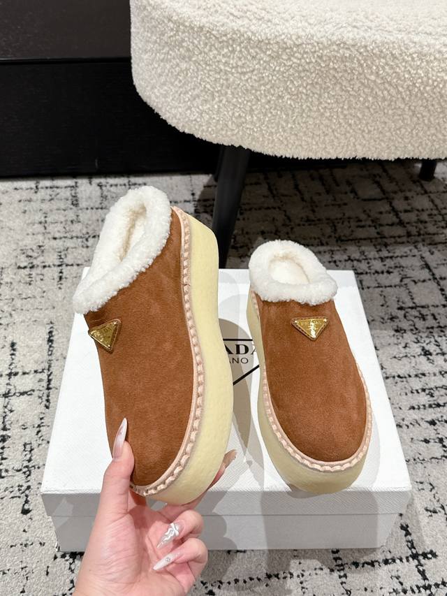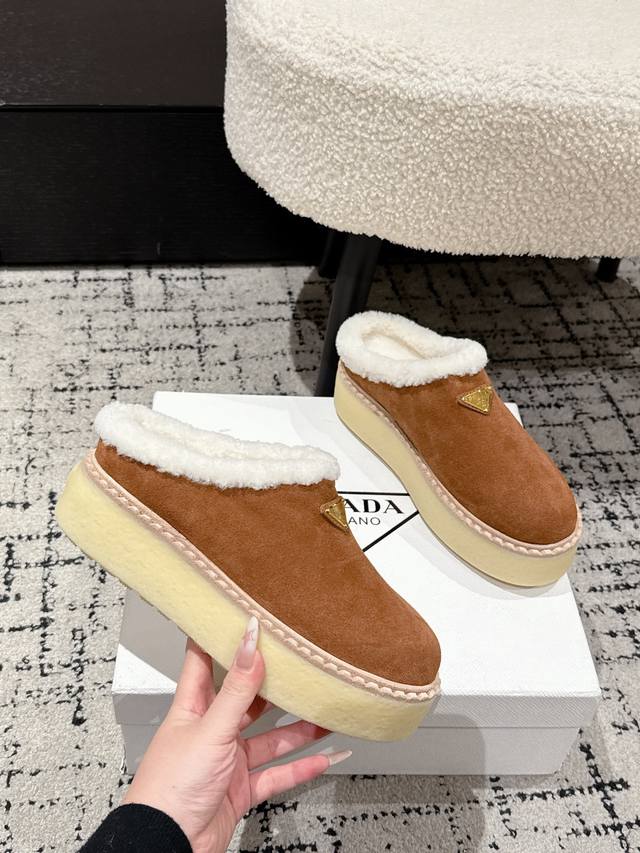 代购级 prada普拉达 25 厚底 休闲 羊毛半拖 DDD 这款运动鞋延续经久不衰的轮廓,是新款经典单品 采用麂皮 精心制作, 提升格调 款式轻盈,搭配三角扣标志加5Cm厚底 四季皆宜,可与各式休闲造型搭配,在各种风格充斥眼球的时代,最能长久陪伴搭配的 一点一点俘获人心 DDD 面料: 进口麂皮 DDD 内里: 羊羔毛 DDD 大底: Tpu防滑大底 +真皮沿条 DDD 底厚: 5Cm DDD Size:#35-41 40 41订做不退换 DDD