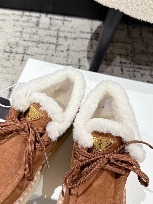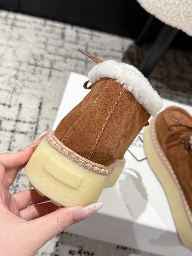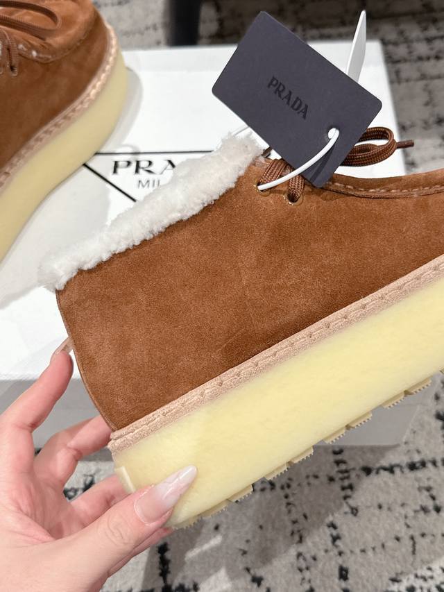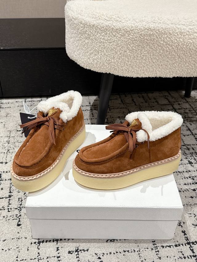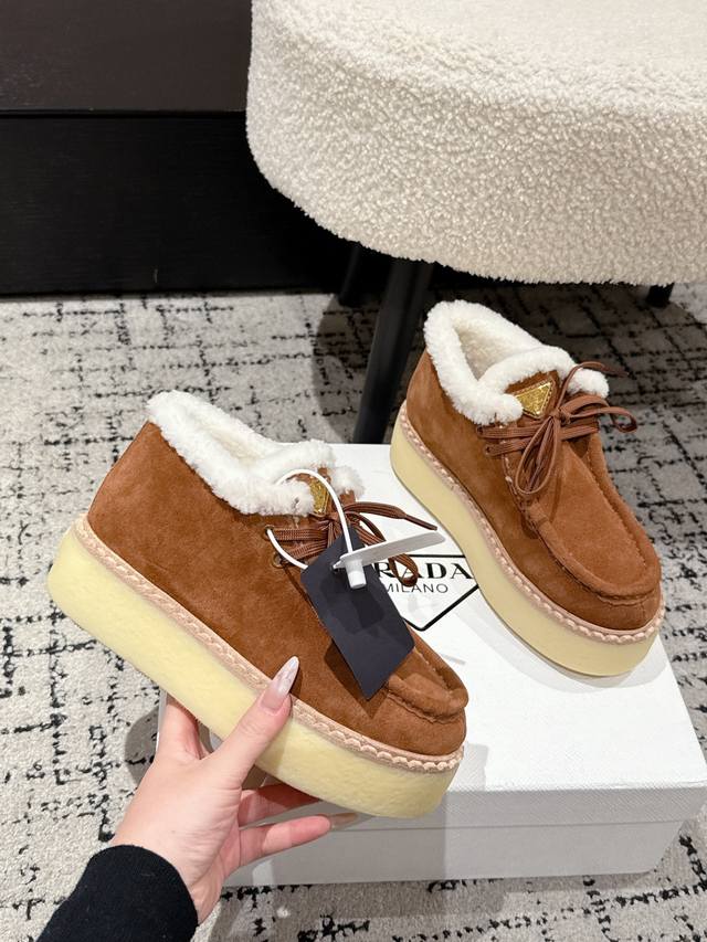 代购级 DDD prada普拉达 25 最新 厚底休闲 羊毛 休闲鞋 DDD 这款运动鞋延续经久不衰的轮廓,是新款经典单品 采用麂皮 精心制作, 提升格调 款式轻盈,搭配三角扣标志加5Cm厚底 四季皆宜,可与各式休闲造型搭配,在各种风格充斥眼球的时代,最能长久陪伴搭配的 一点一点俘获人心 DDD 面料: 进口麂皮 DDD 内里: 羊羔毛 DDD 大底: Tpu防滑大底 +真皮沿条 DDD 底厚: 5Cm DDD Size:#35-41 40 41订做不退换 DDD