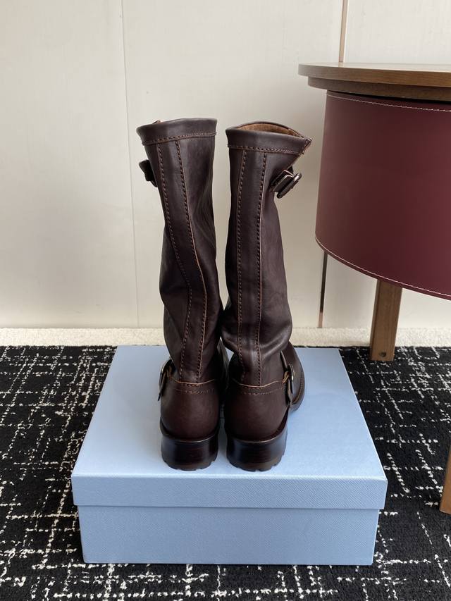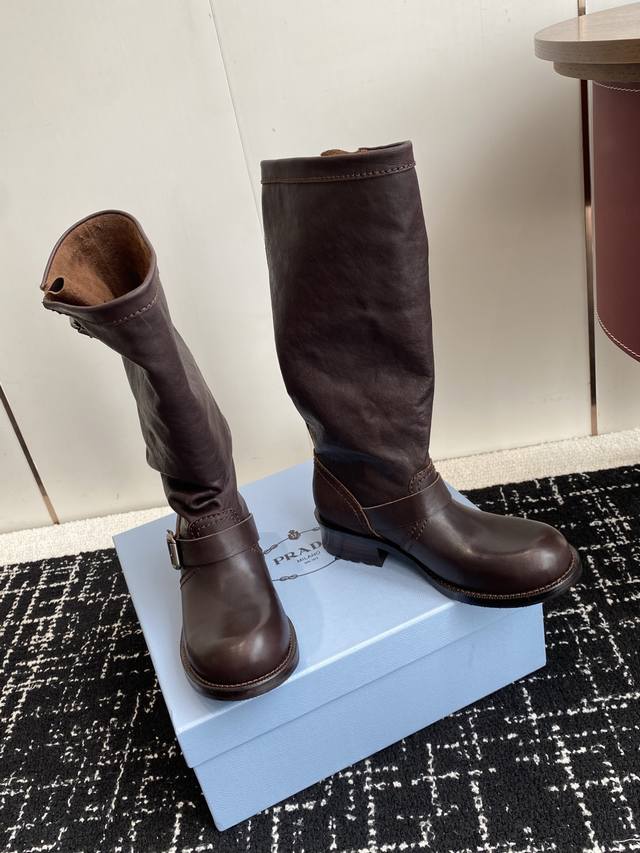 代购级 Prada普拉达 25Ss 秋冬新款 复古堆堆靴 时尚堆堆靴,独到味道,人人都爱也轻松驾驭 每年都会爆.还有就是百搭经典的鞋楦,足以征服你,穿上它,增高休闲两不失误,上脚简单帅气 面料进口水洗小牛皮 内里垫脚透染羊皮 柔软细腻,脚感舒适, 意大利真皮大底防滑橡胶大底组合 Size:#35-40 40订做不退换