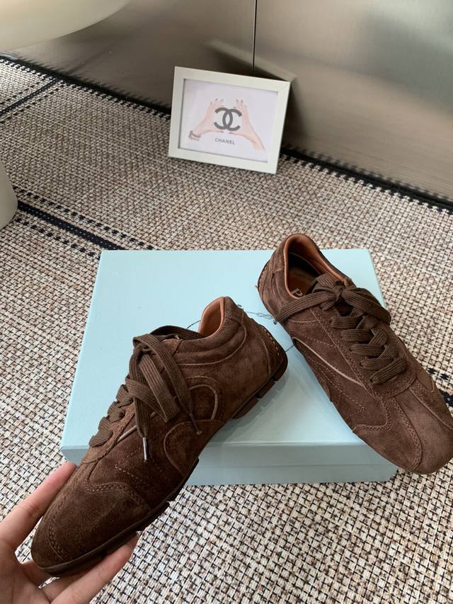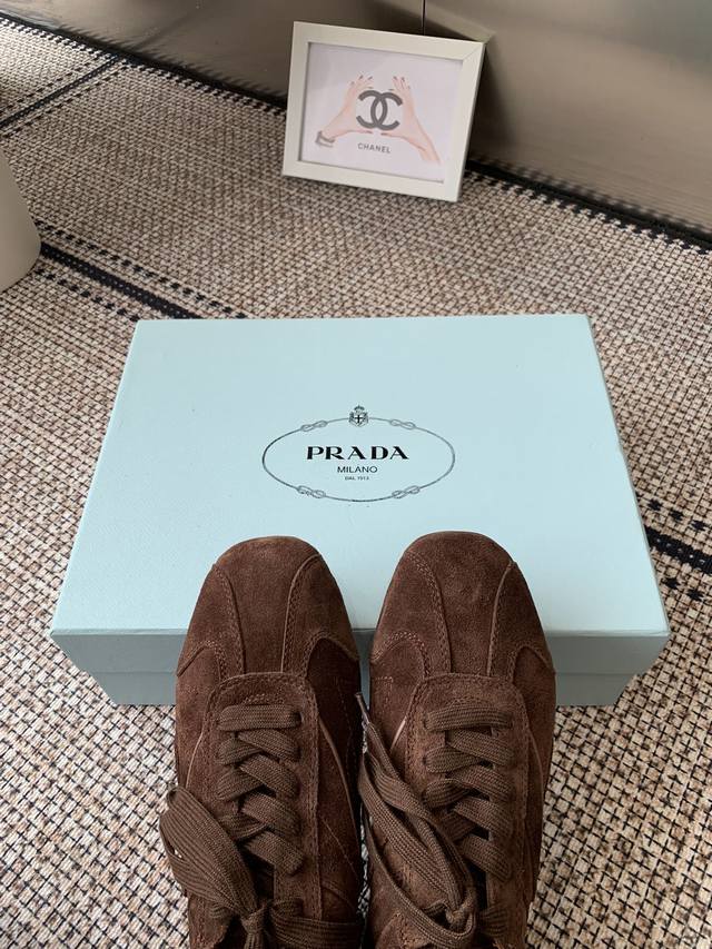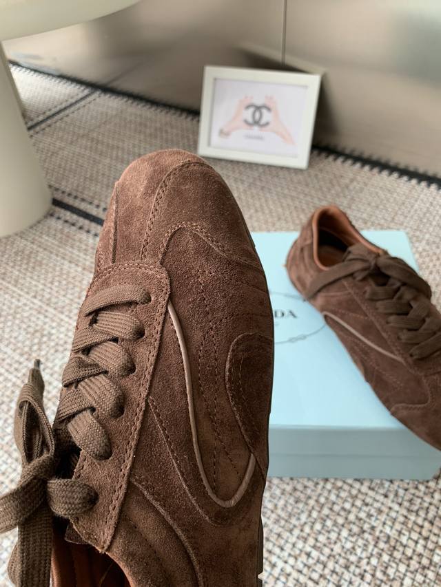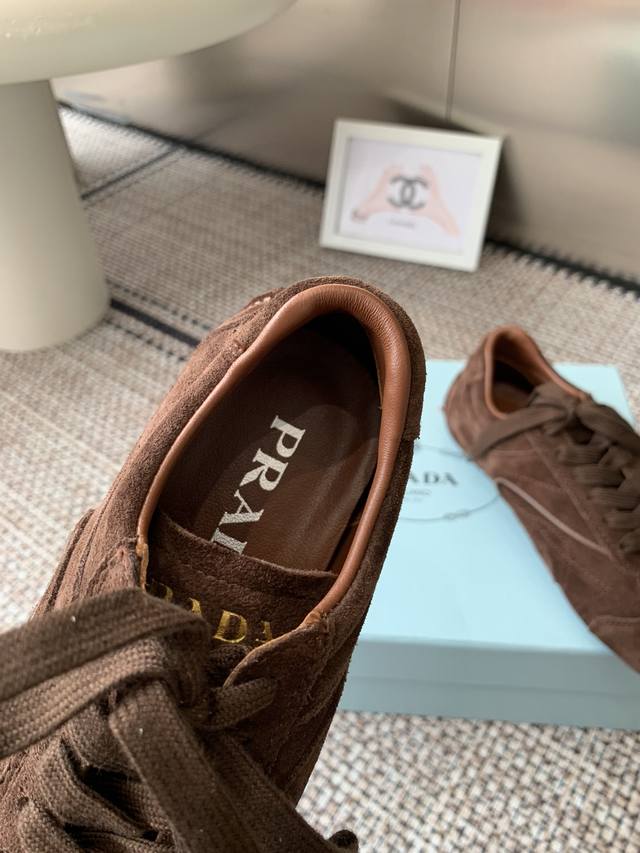 最高版 Prada普拉达 25新款 厚底 休闲运动鞋 这款运动鞋延续经久不衰的轮廓,是新款经典单品。采用皮革精心制作,...
