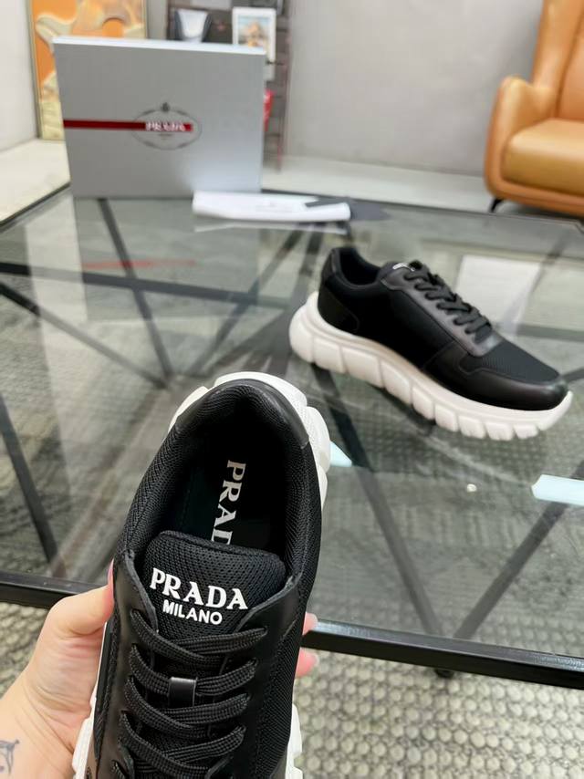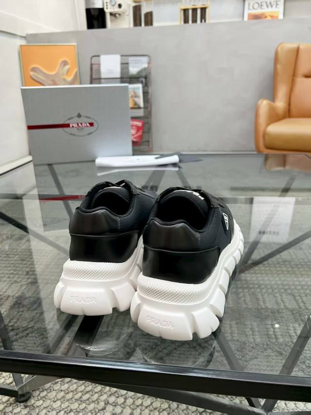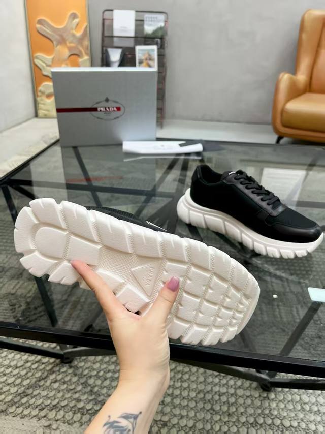 最高版 prada普拉达 25新款 厚底 休闲运动鞋 这款运动鞋延续经久不衰的轮廓,是新款经典单品。采用皮革精心制作,...