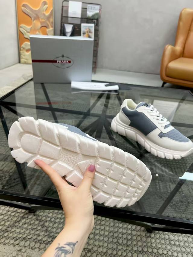 原单品质独家首发 普拉达 独特现代风运动鞋。休闲乐福原版皮 羊里 拒绝脱色磨脚 鞋底:原厂特供原版底,超酷...