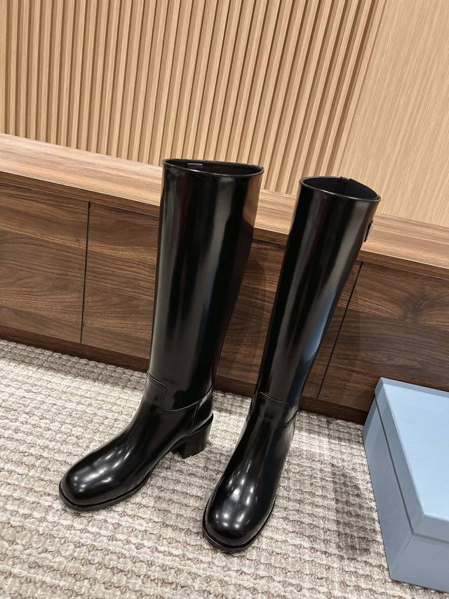 全皮款 # 普拉达骑士靴 时尚休闲机车长靴靴 独到味道 人人都爱也轻松驾驭 每年都会爆.还有就是经典的鞋楦 足以征服你 穿上它 增高休闲两不失误 脚简单帅气 !