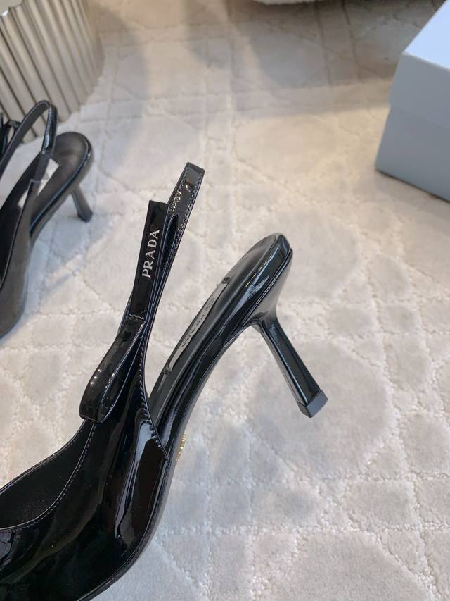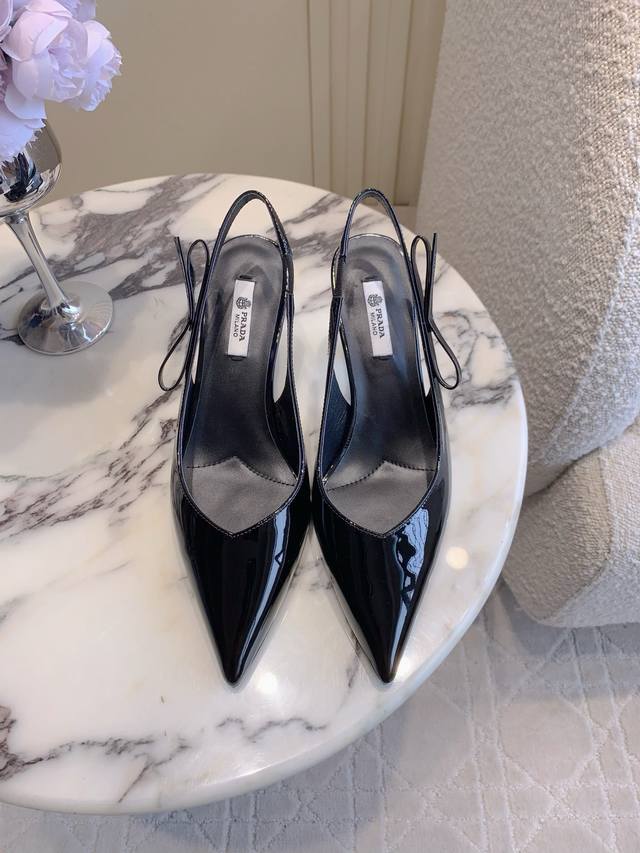 FFF 出厂价P DDD Prad*新款尖头后空高跟鞋 经典百搭款 温柔知性风 舒适好穿 DDD 鞋面小牛皮 内里垫脚羊皮 跟高7Cm 意大利真皮大底 尺码35-39 34 40 41定做 DDD