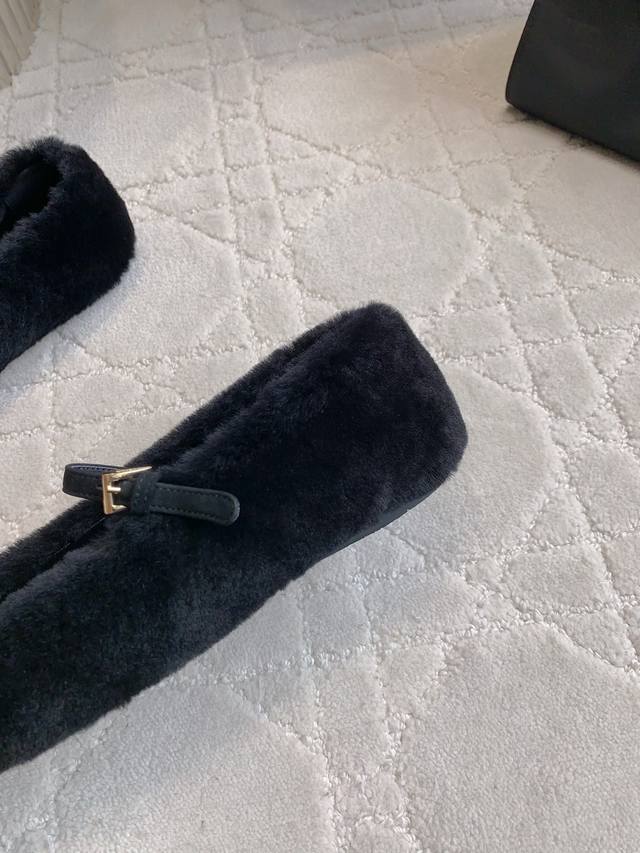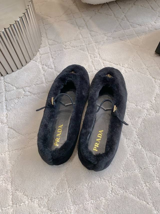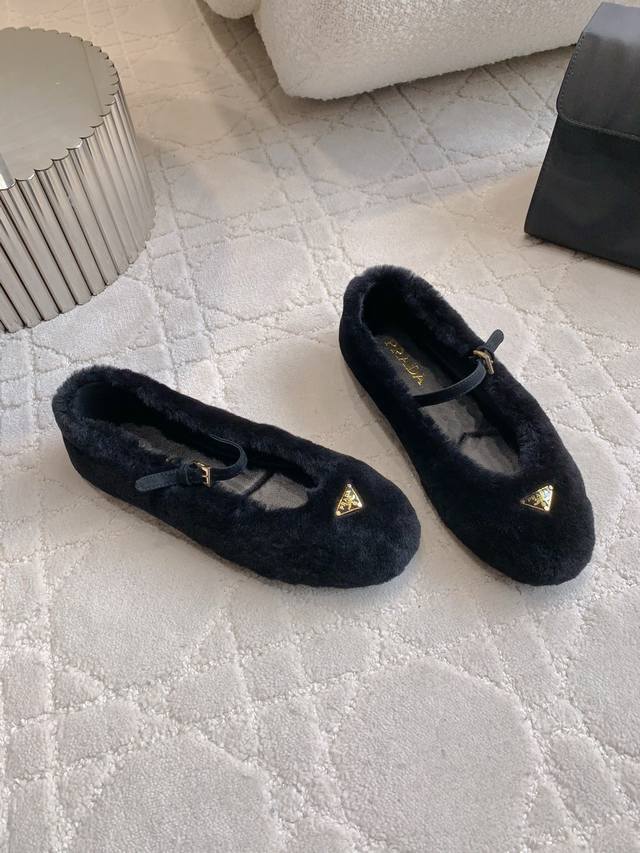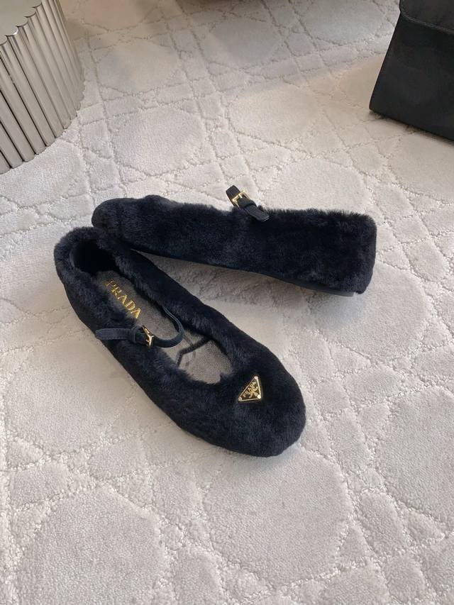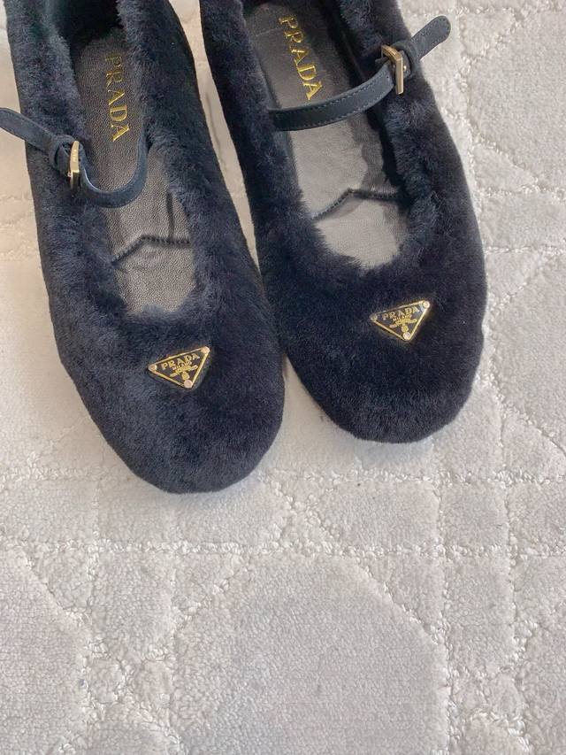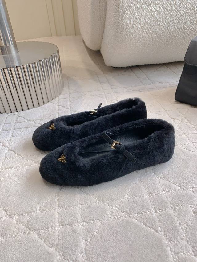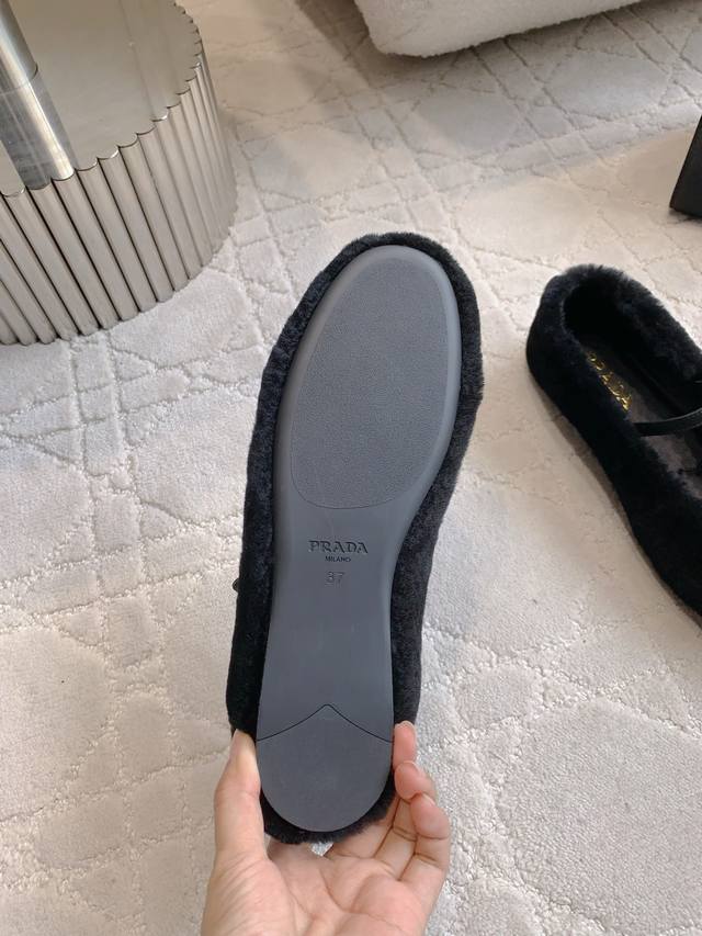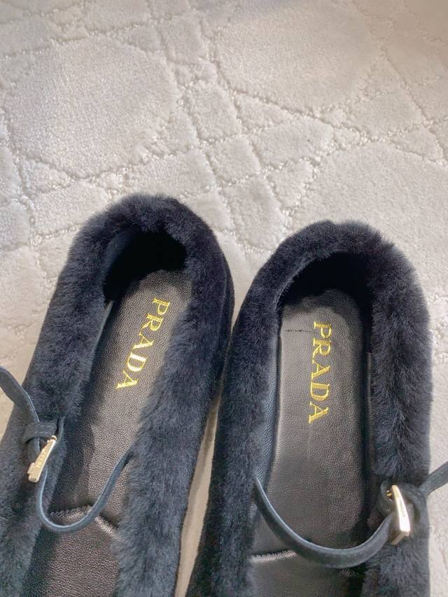 出厂价P Prad*秋冬新款毛毛玛丽珍平底鞋 乖巧可爱 实穿又保暖 鞋面进口羊毛 内里垫脚羊皮 原版开模大底 尺码35-39 40 41定做