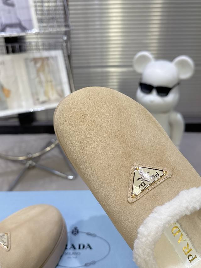 出厂价Pp: 普拉达 Parda 爆款早春毛拖鞋,走秀单品,冬季室内,早春室外。该款羊皮毛拖鞋配有橡胶Ip超轻发泡鞋底,软羊革绗缝图案呼应标志性的Prada三角