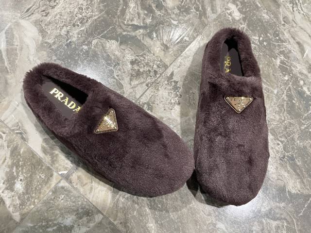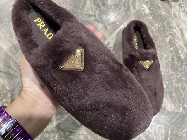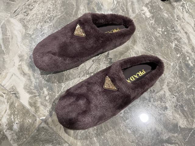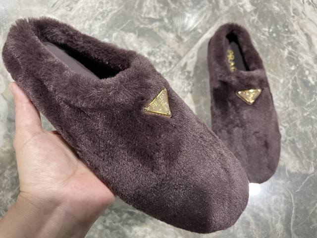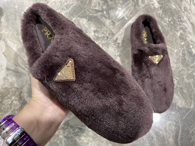 出厂价pp: DDD 普拉达 prada25秋冬毛毛拖鞋系列 半拖羊毛拖鞋 经典三角扣 舒适 萌萌哒 可爱 时尚 高雅 百搭 ,羊毛舒适柔软,唤醒秋冬暖意。让您从早到晚舒适踱步。搭配袜子可以轻松驾驭四季变幻。羊毛,绵羊纹内里垫脚,原版大底!35-40码 DDD