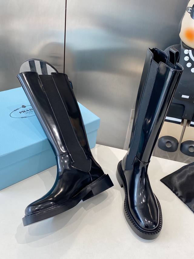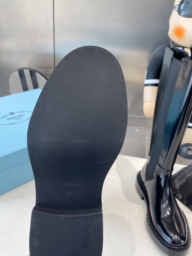 / 出厂 普拉达Prada顶级版本 机车高靴来了,上脚超机好看穿着舒适高雅 专柜原版开模大底1:1复刻 采用 面料:头层牛皮,进口防爆裂开边珠 内里采用进口混种羊皮