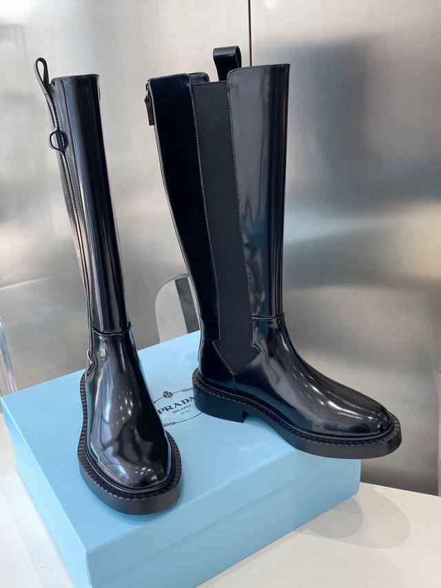 出厂 普拉达Prada顶级版本 机车高靴来了,上脚超机好看穿着舒适高雅 专柜原版开模大底1:1复刻 采用 面料:头层牛皮,进口防爆裂开边珠 内里采用进口混种羊皮