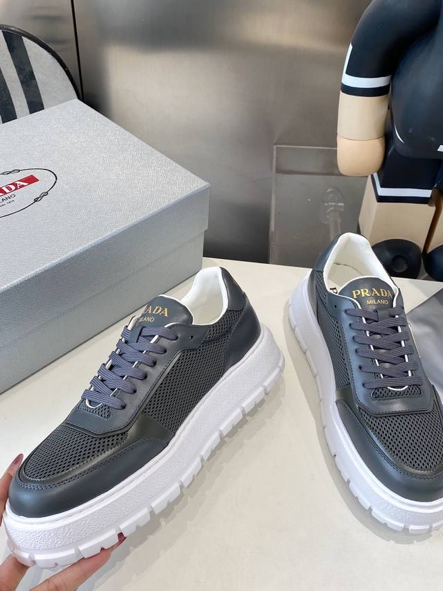 出厂 Prada普拉达 1比1复刻 爆款男鞋出货官网同步经久耐穿,确保支撑力与稳定性,穿着舒适不凡 材质:原版飞织+牛皮面 内里:牛皮 鞋底:原版开模大底 Si