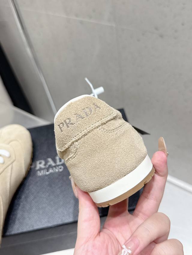 出厂 Prada 普拉达 Fw25 Showroom德训鞋 休闲鞋 大底开模Tpu大底 鞋面麂皮有肌理感,内里羊皮包裹,软软糯糯的.鞋垫加厚小羊皮,踩上去无比舒