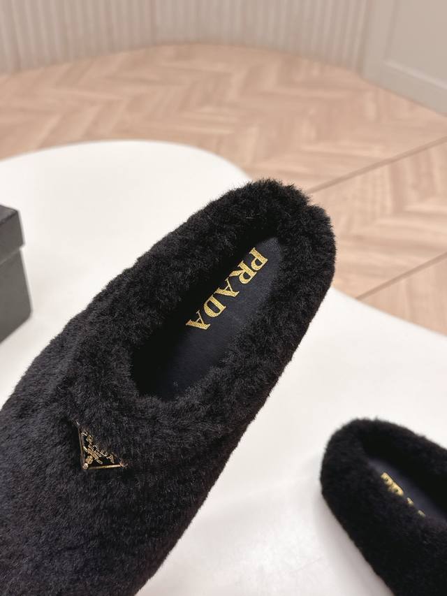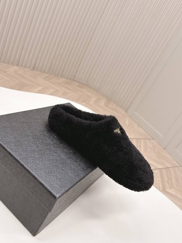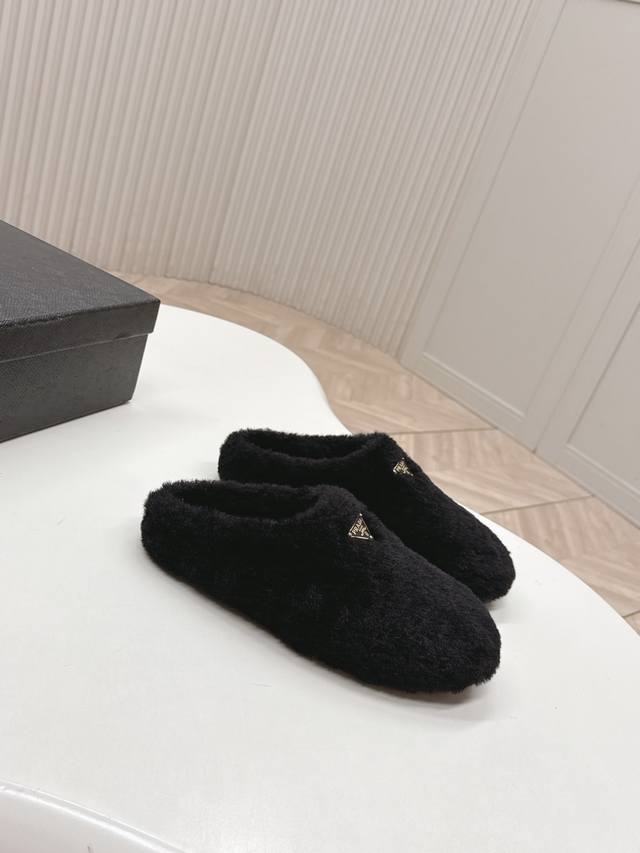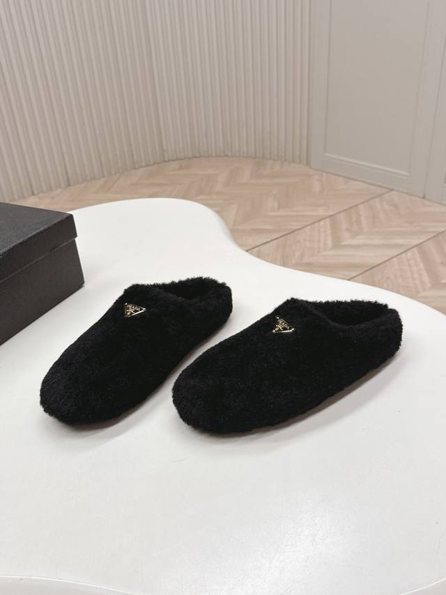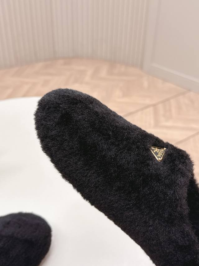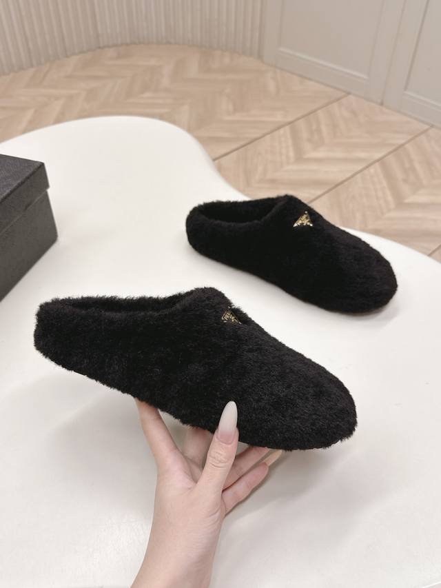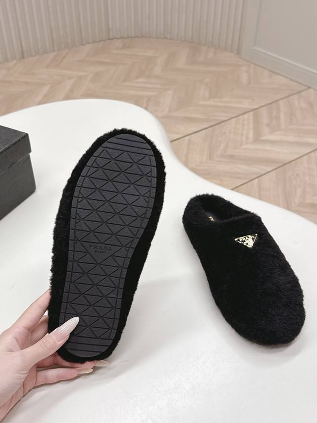 / 出 普拉达 prada25秋冬毛毛拖鞋系列 半拖羊毛拖鞋 经典三角扣 舒适 萌萌哒 可爱 时尚 高雅 百搭 ,羊毛舒适柔软,唤醒秋冬暖意。让您从早到晚舒适踱步。