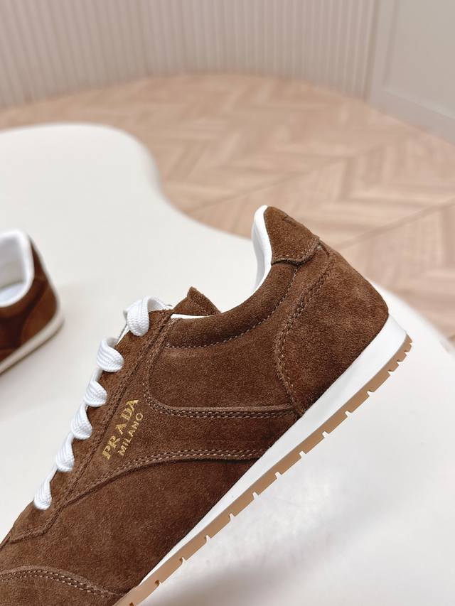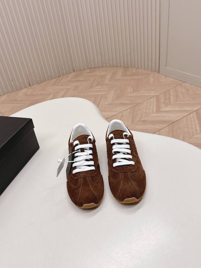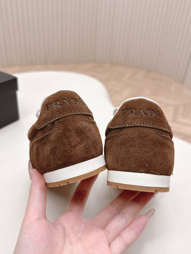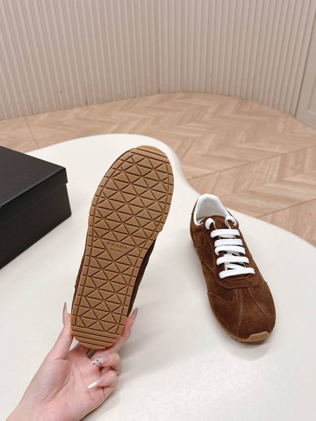 出 prada 普拉达 25Ss新款 阿甘鞋 德训运动鞋 DDD 高级绒面打造,灵感来自复古,全新演绎经典,轻便、舒适、透气的四季必备单品 DDD 无论是搭配牛仔裤还是裙子,风格切换毫 DDD 无压力麂皮材质让脚感更柔软,适合长时间穿着,即便是逛街也不会觉得累。这个细节真是打动了我! DDD 材质:高丝光牛反绒 DDD 内里:羊皮 DDD 大底:Tpu大底 DDD Size:#女35-40 40订做不退换 DDD