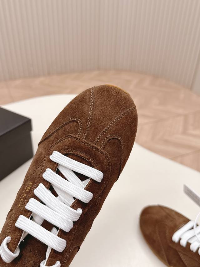 出 prada 普拉达 25Ss新款 阿甘鞋 德训运动鞋 高级绒面打造,灵感来自复古,全新演绎经典,轻便、舒适、透气的四季必备单品 无论是搭配牛仔裤还是裙子,风