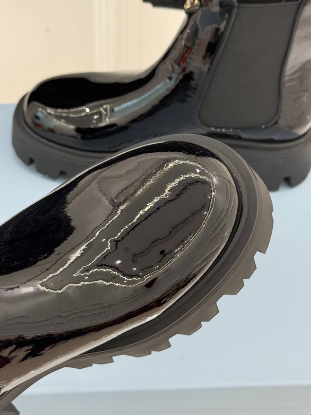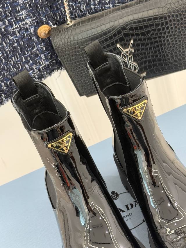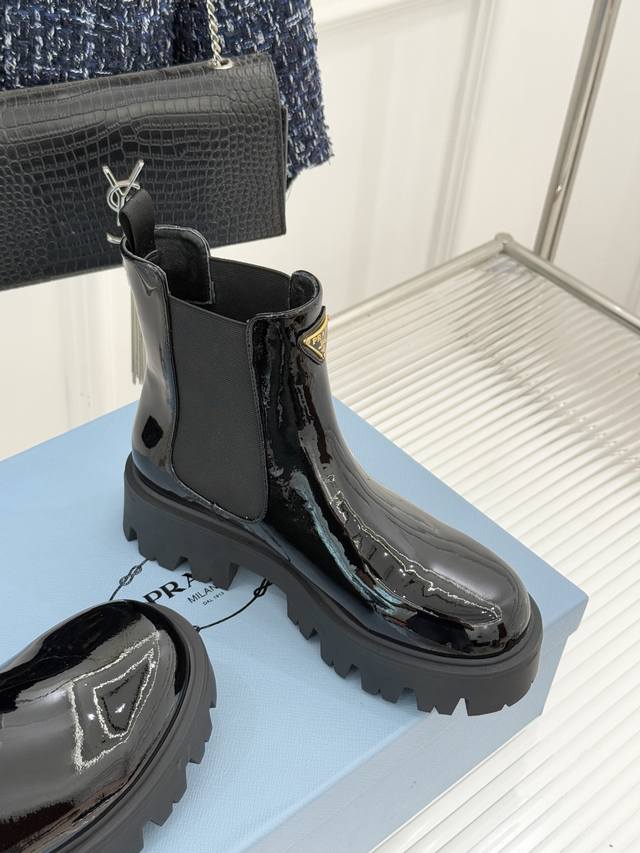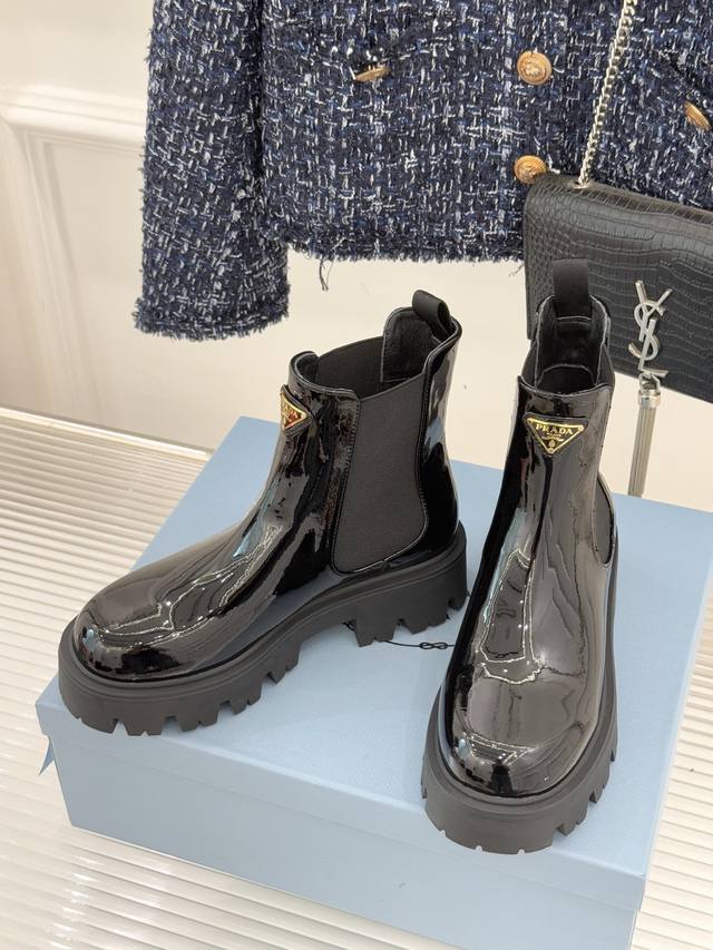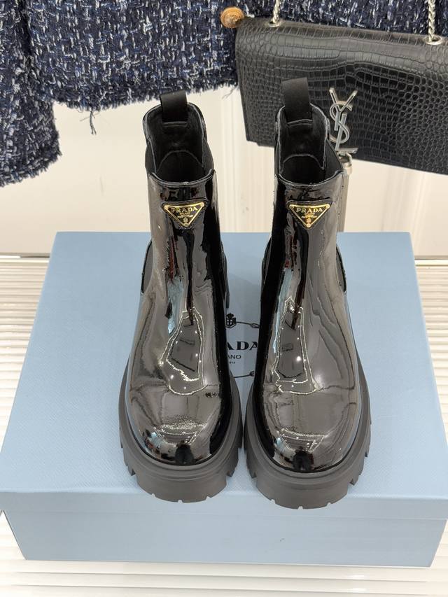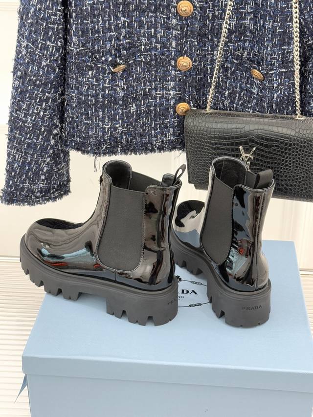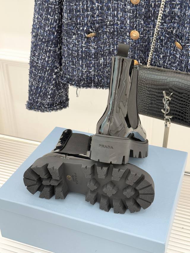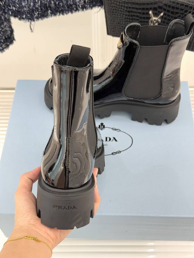 厂价 DDD prada 普拉达经典三角标厚底切尔西短靴 DDD 鞋身点睛的珐琅金属三角标 DDD 自1913承载着品牌的匠心与革新精神 DDD 低调镌刻 prada Milano 的底蕴。 DDD 16Cm利落靴筒勾勒脚踝线条 DDD 甄选细腻小牛皮裁出流畅轮廓 DDD 侧边弹力织带藏起穿脱的便捷与随性 DDD 5Cm锯齿厚底是视觉焦点 DDD 行走时如履平地却能悄然拉长比例, DDD 堪称 作弊式 显高利器。 DDD 无论是搭配紧身牛仔裤打造 Casual Chic 风格 DDD 还是适配西装裤与廓形