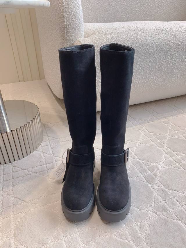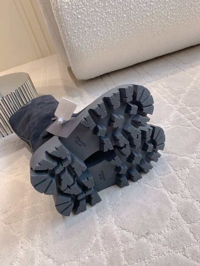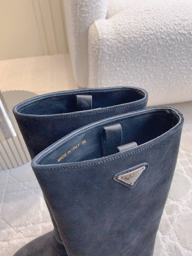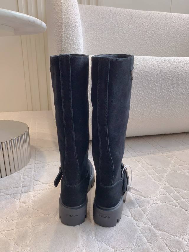 反绒 皮面 Prad*新款厚底长靴 上脚超显腿长 硬挺帅气 效果惊艳!简约百搭单品! 鞋面牛反绒 小牛皮 内里垫脚羊皮 原版开模大底 尺码35-39 40 41定做