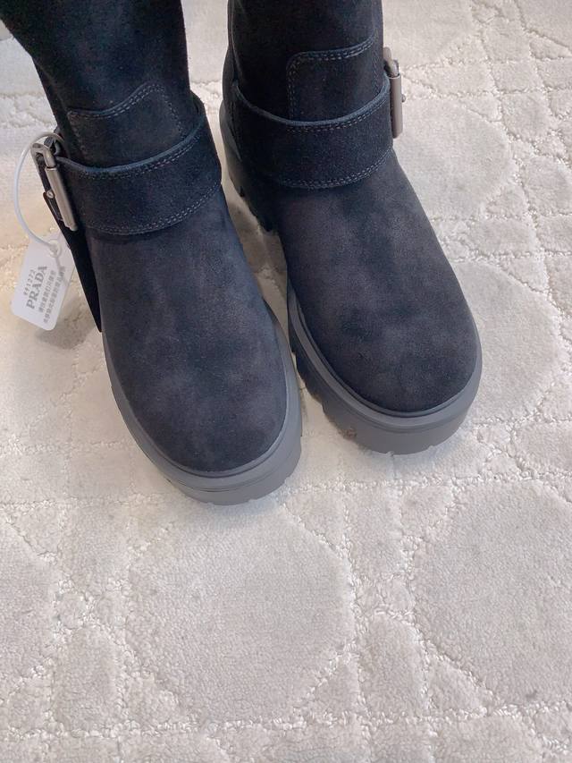 反绒 皮面 Prad*新款厚底长靴 上脚超显腿长 硬挺帅气 效果惊艳!简约百搭单品! 鞋面牛反绒 小牛皮 内里垫脚羊皮 原版开模大底 尺码35-39 40 41