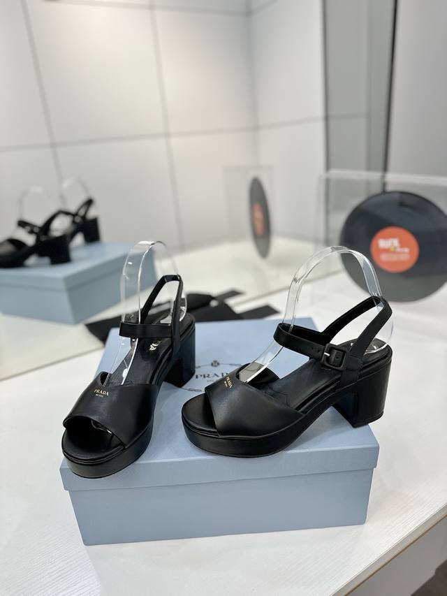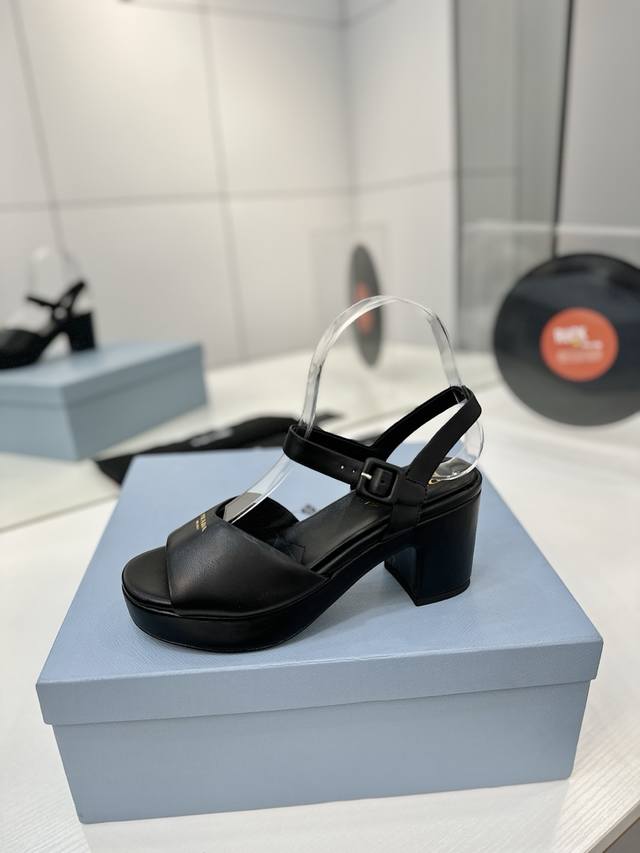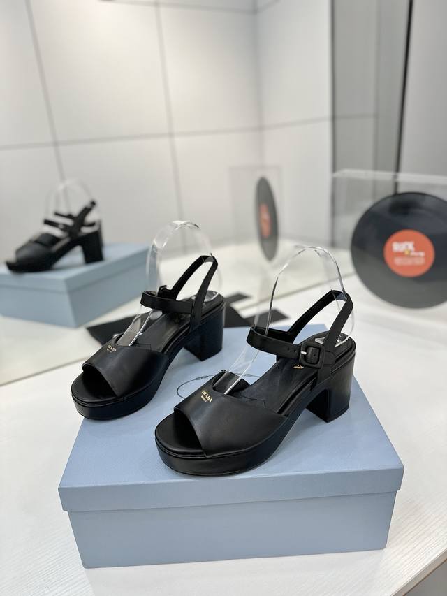 / 工厂P价 普拉达水台 春秋季新品 Saffiano高跟厚底绒面皮凉鞋,秉承现代设计理念,绽现精致魅力。 织物的新雅色彩平添明艳格调。标志性三角形徽标彰显品牌特色