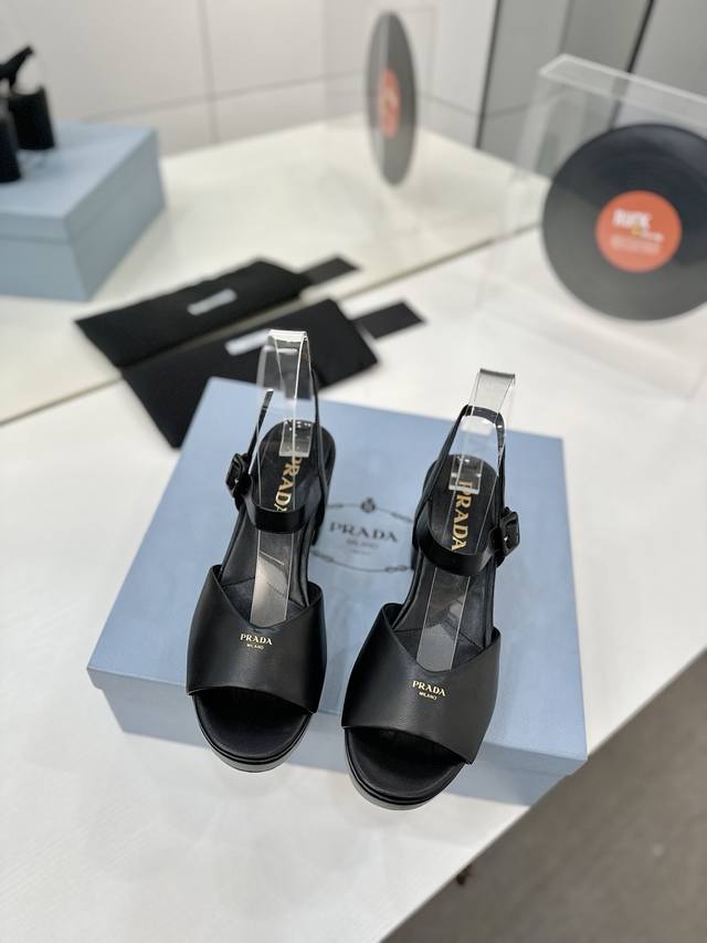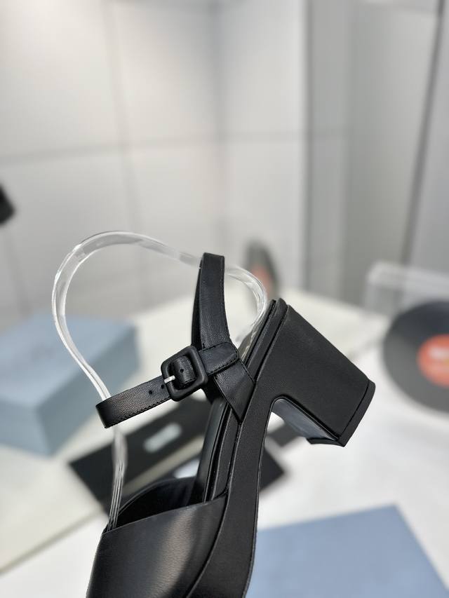 工厂P价 普拉达水台 春秋季新品 Saffiano高跟厚底绒面皮凉鞋,秉承现代设计理念,绽现精致魅力。 织物的新雅色彩平添明艳格调。标志性三角形徽标彰显品牌特色