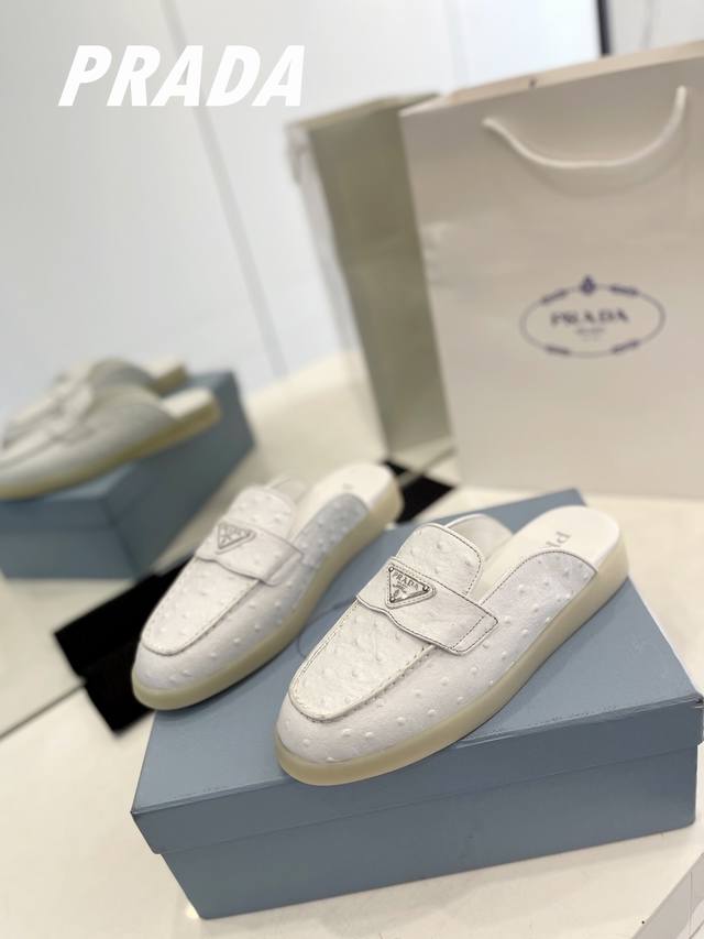 工厂p价 男20 顶级版本普拉达 情侣款 乐福鞋 半拖 低调奢华懒人鞋,富人的不二选择! 软胶底素有踩云感之称~舒适度百分百 细腻羊猄鞋面,柔和而有质感!高级感
