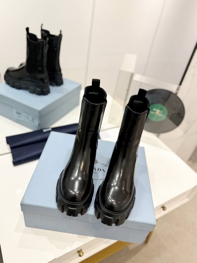/ 工厂P价 男20 Prada马丁靴 最近得不得了 创新的Prada赞哦欧洲购入Y版1:1复刻 Tpu高韧性大底 有6Cm的高度 所有的材质与工艺 Y版一致短靴