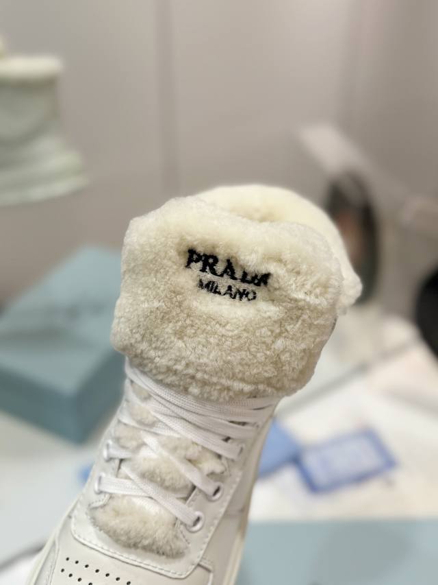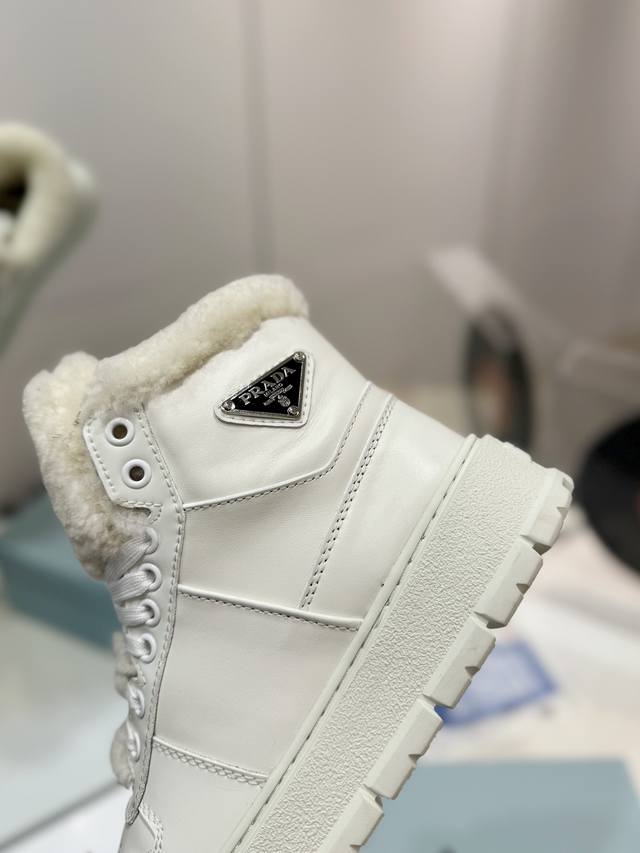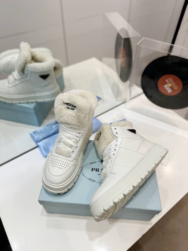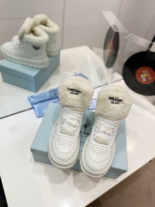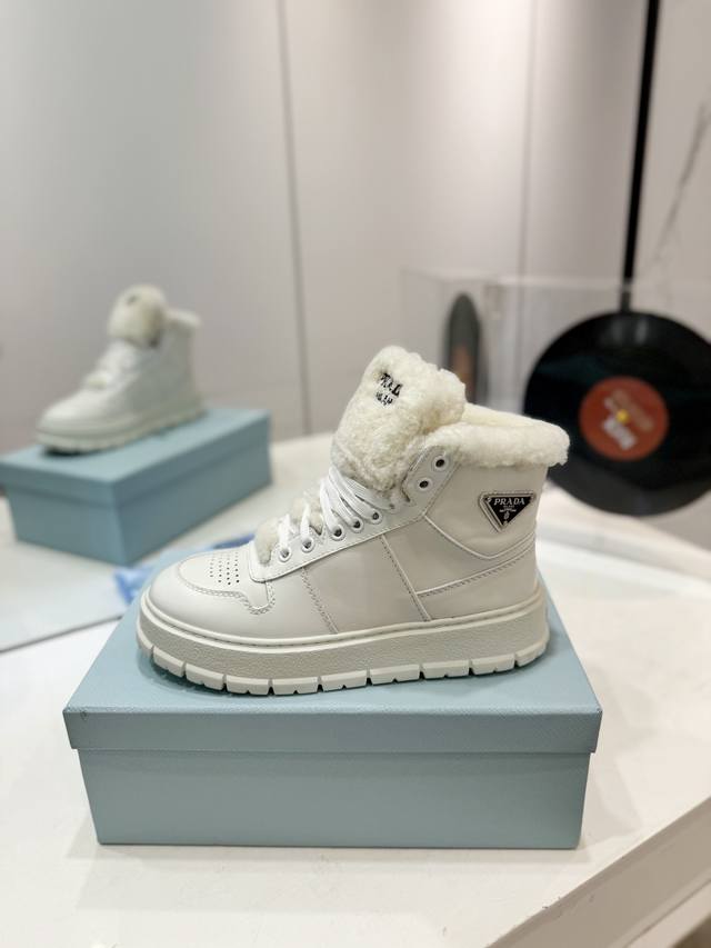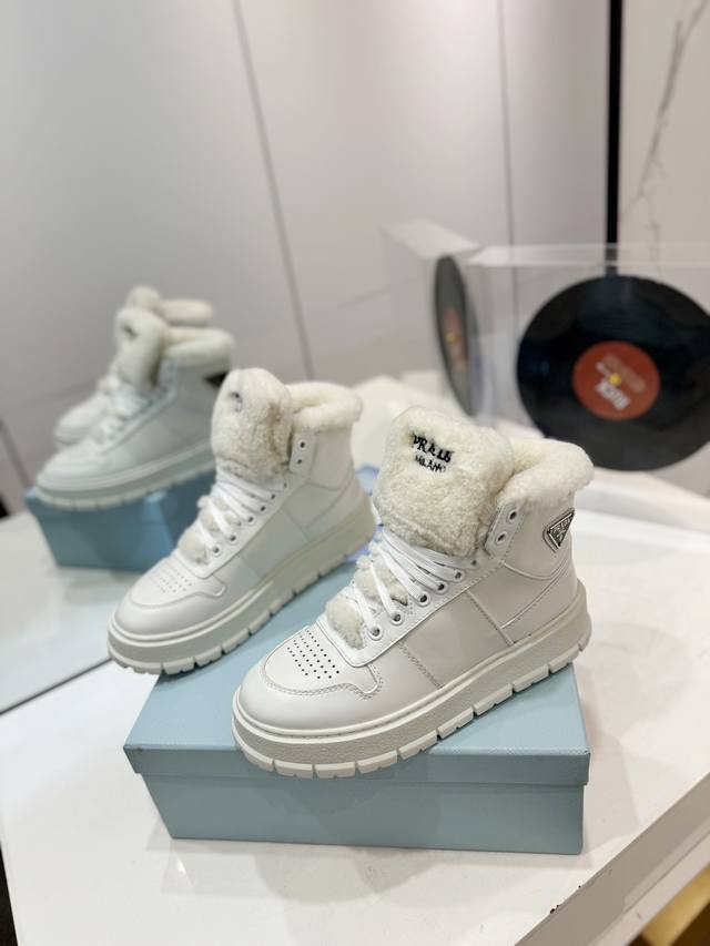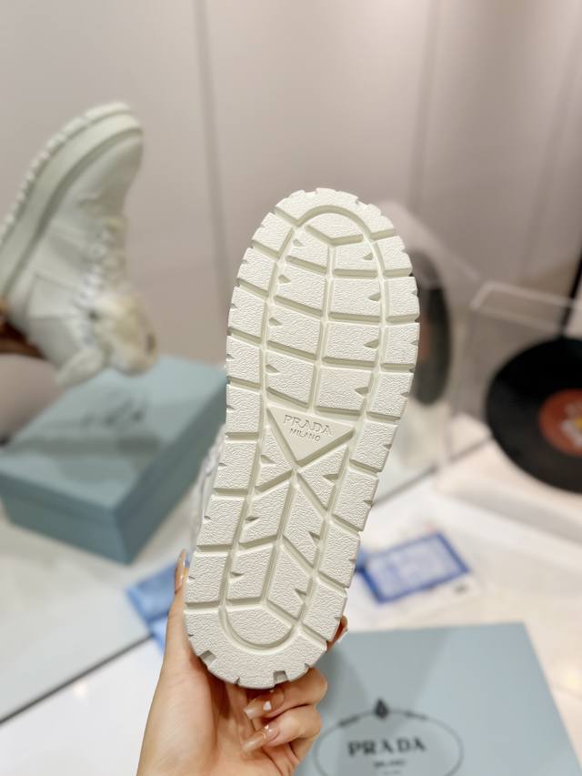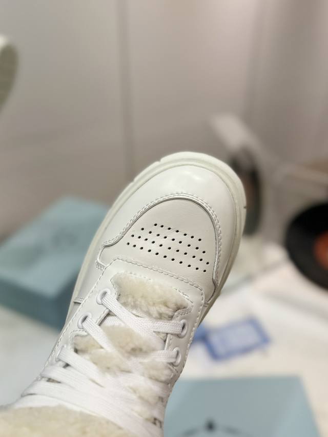 工厂P价 Prada普拉达运动鞋加绒经典休闲鞋羊毛鞋系列 今年最潮的三角标一脚蹬英伦风复古情侣小白鞋,众多网红上脚, 独家好货且卖且珍惜拒绝通货 5Cm高度让增