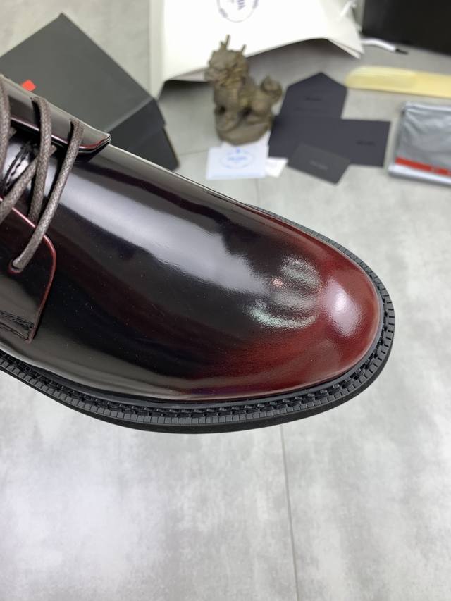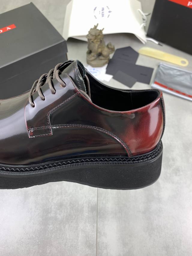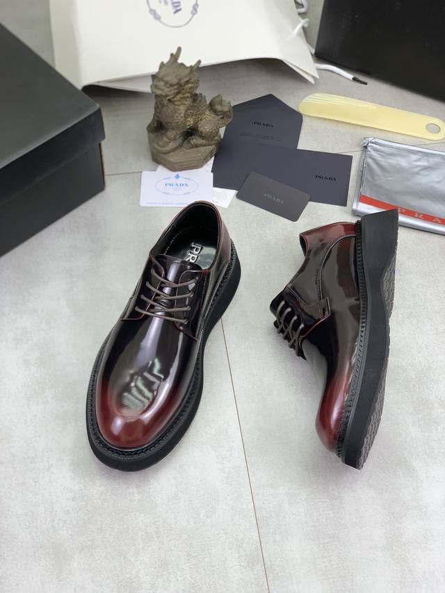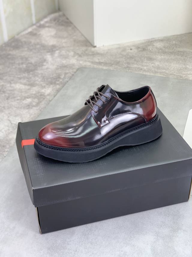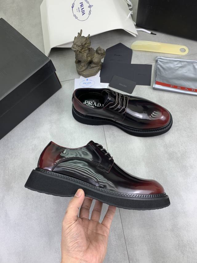 工厂p价p 实价 prada 顶级版本 普拉达新款休闲皮鞋 原版购入开发 做货 普拉达家男士经典系列 科技透气面料搭配牛皮 休闲运动鞋 休闲之履运动老爹鞋结合高科技透气材质与牛皮,侧面p家专属纽扣装饰 大底满满p斜体设计和鲜艳色彩展现活力,延续品牌设计灵感。轻盈漫步都市,感受无拘舒适。 Ddd 配送精美包装 Ddd 面料:原版定制小牛皮配透气材质 Ddd 内里:牛皮内里牛皮垫脚 Ddd 大底:开模Tpu发泡材质 Ddd 底厚:3.5Cm Ddd Size :男款38-45 黑色 酒红色颜色可选 DDD