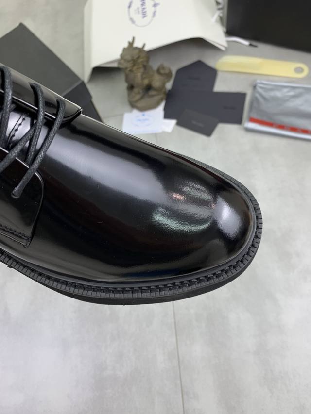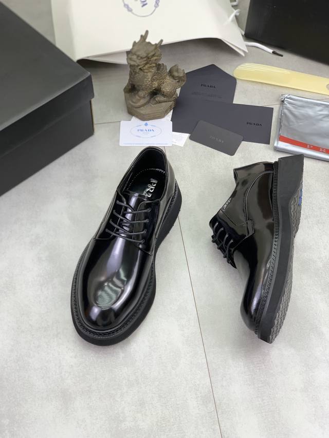 工厂p价p 实价 prada 顶级版本 普拉达新款休闲皮鞋 原版购入开发 做货 普拉达家男士经典系列 科技透气面料搭配牛皮 休闲运动鞋 休闲之履运动老爹鞋结合高